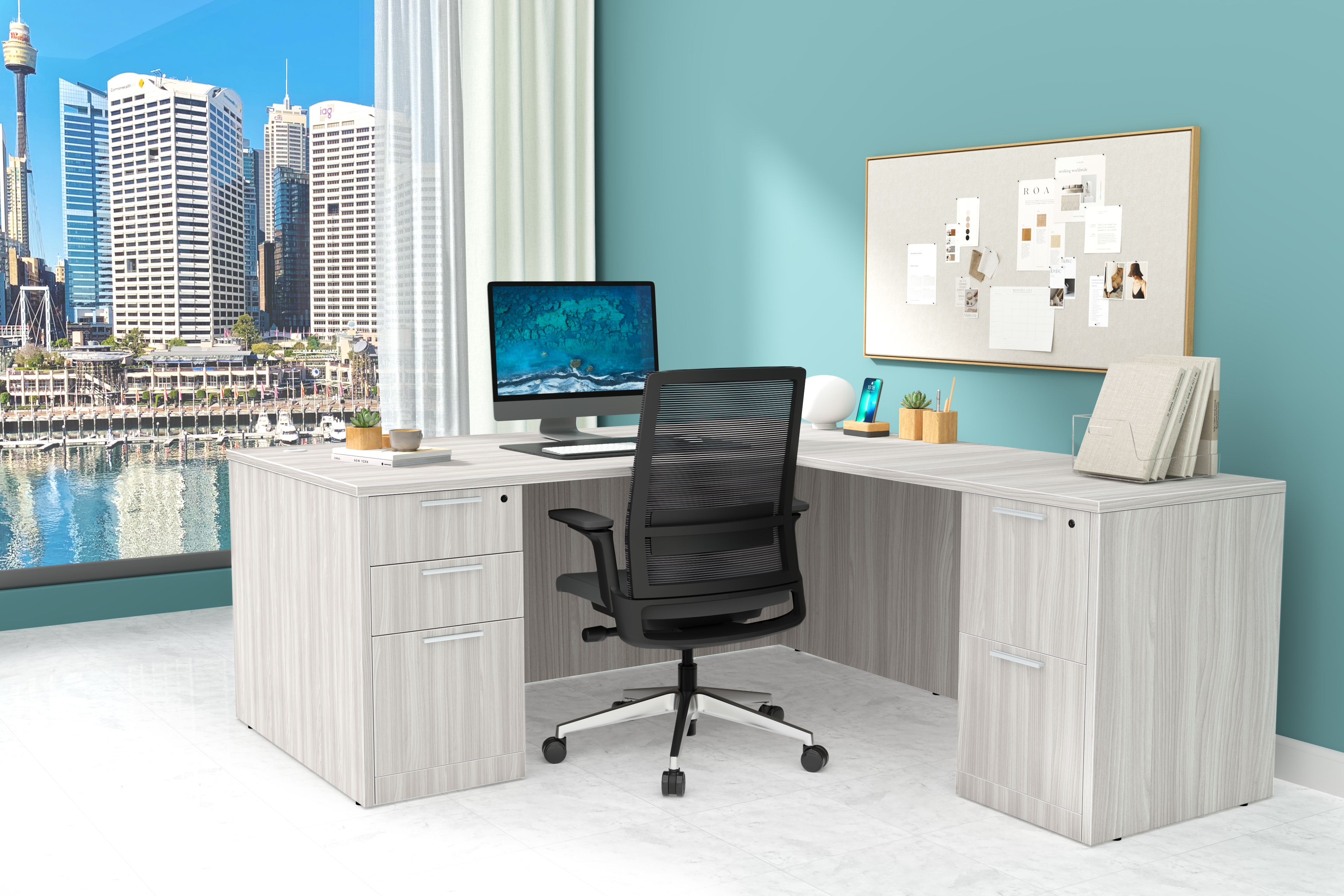 Rayne Waterfront Urban Office in Harbor Elm + Gravity Task Chair