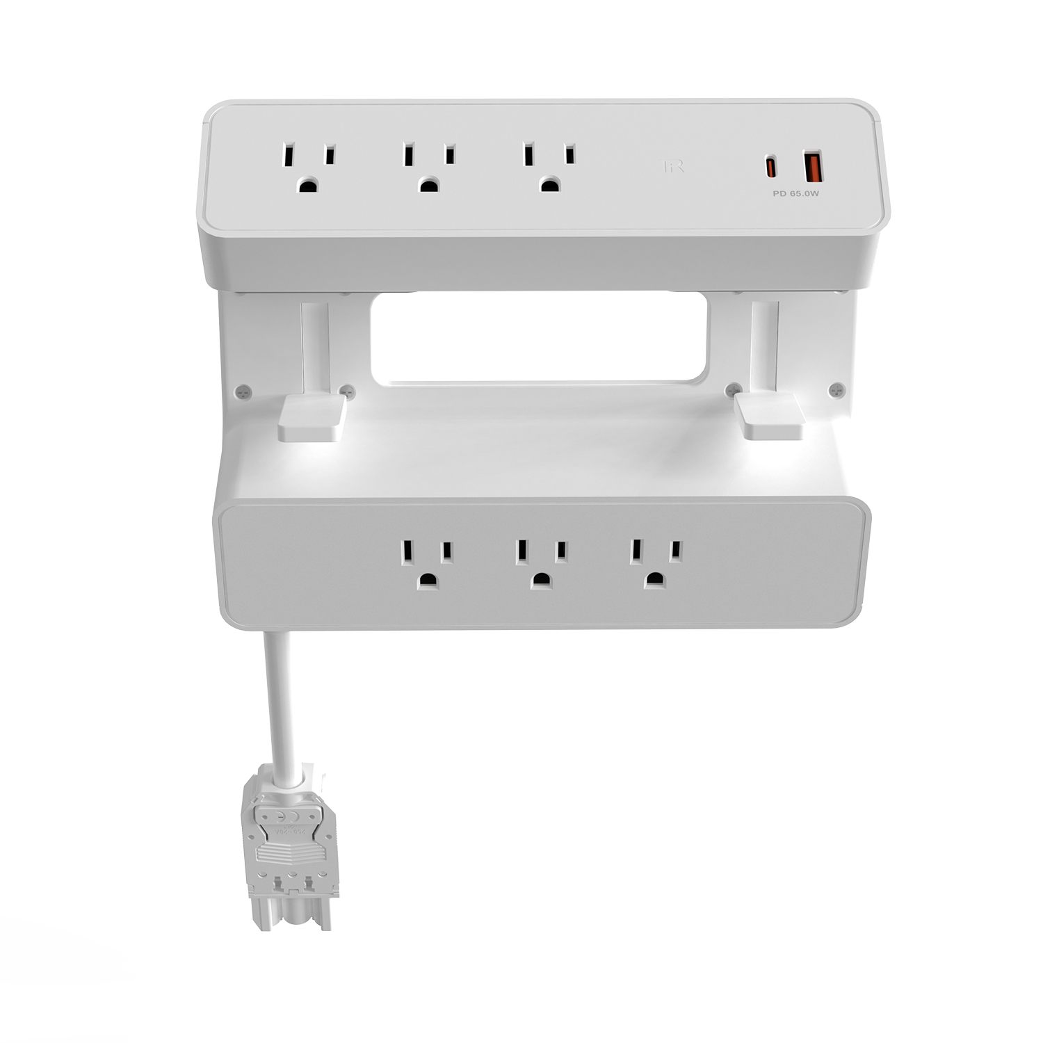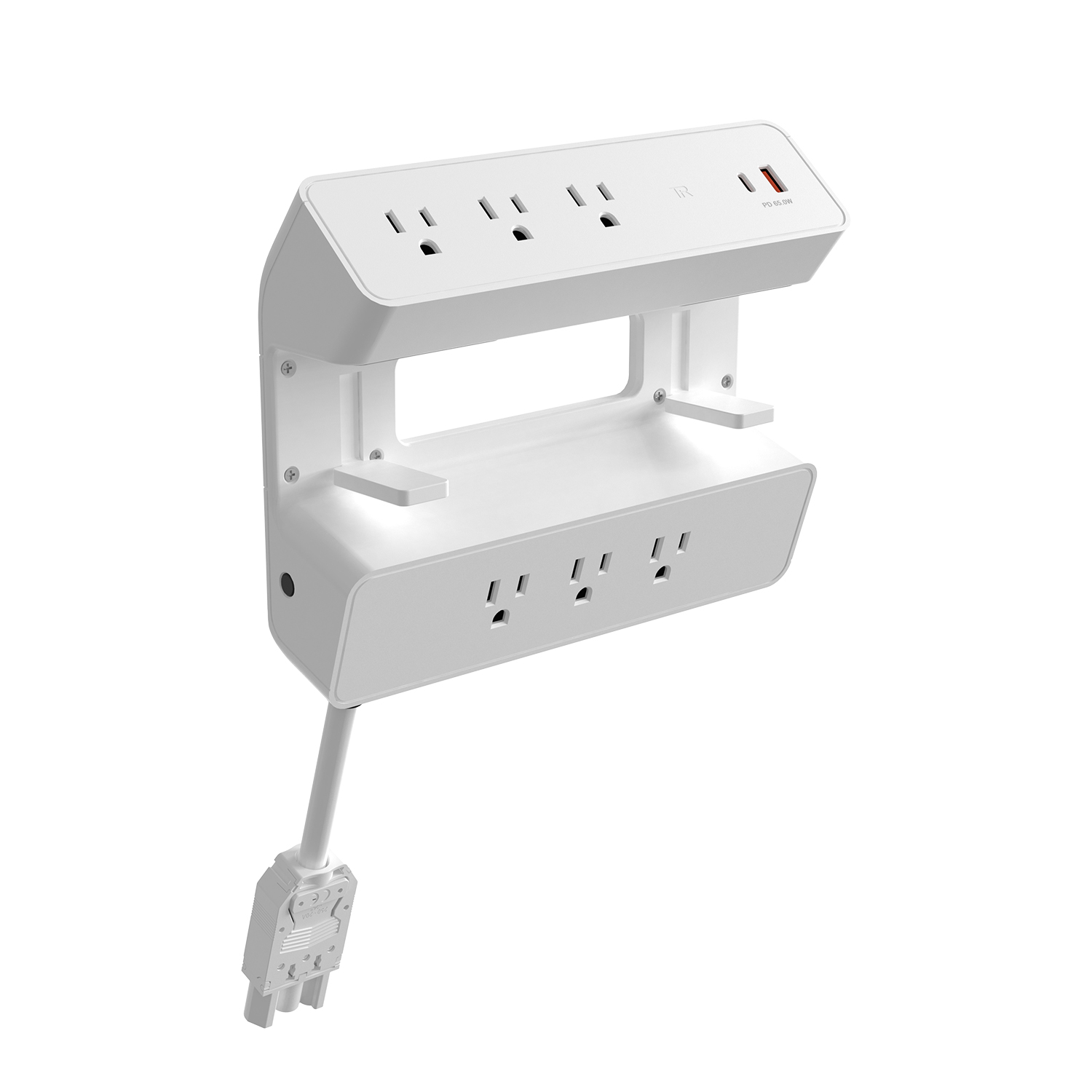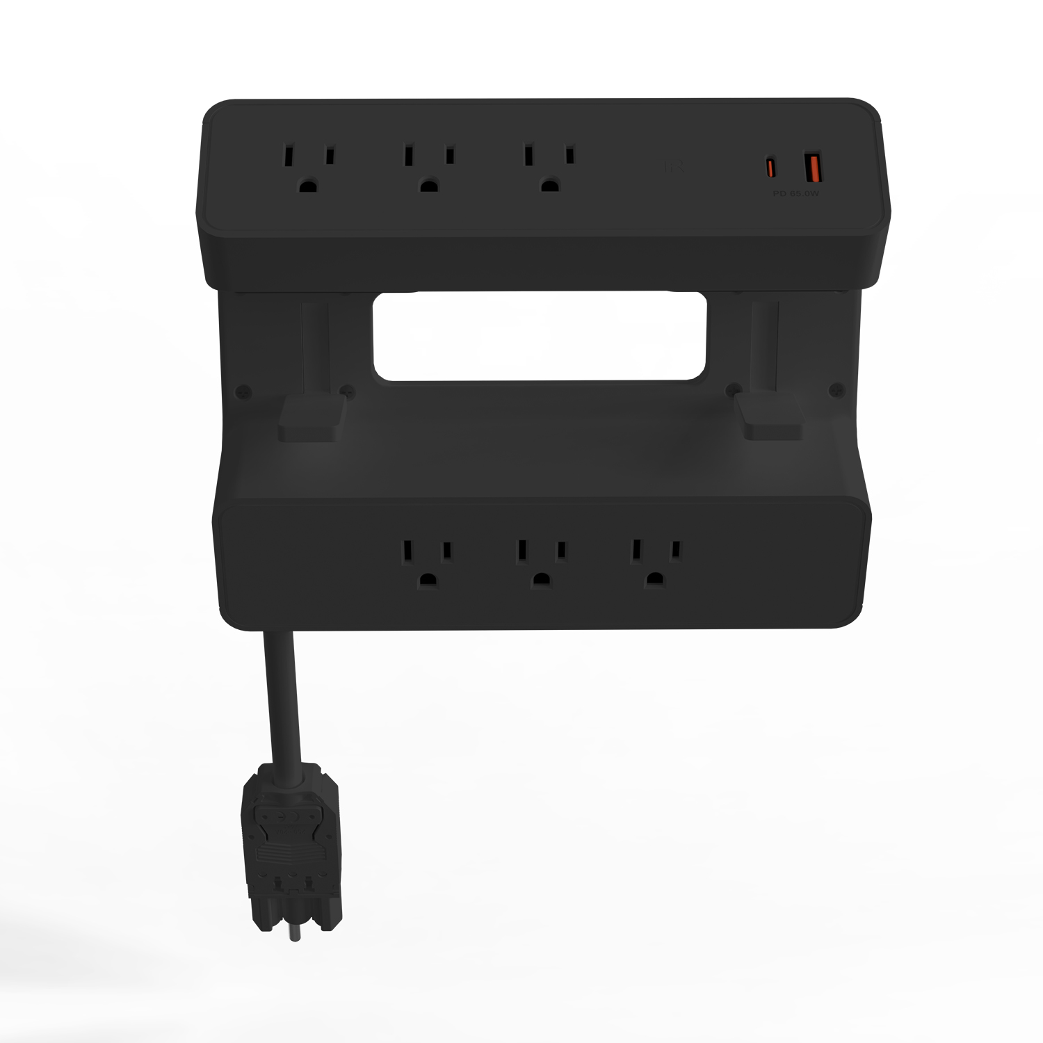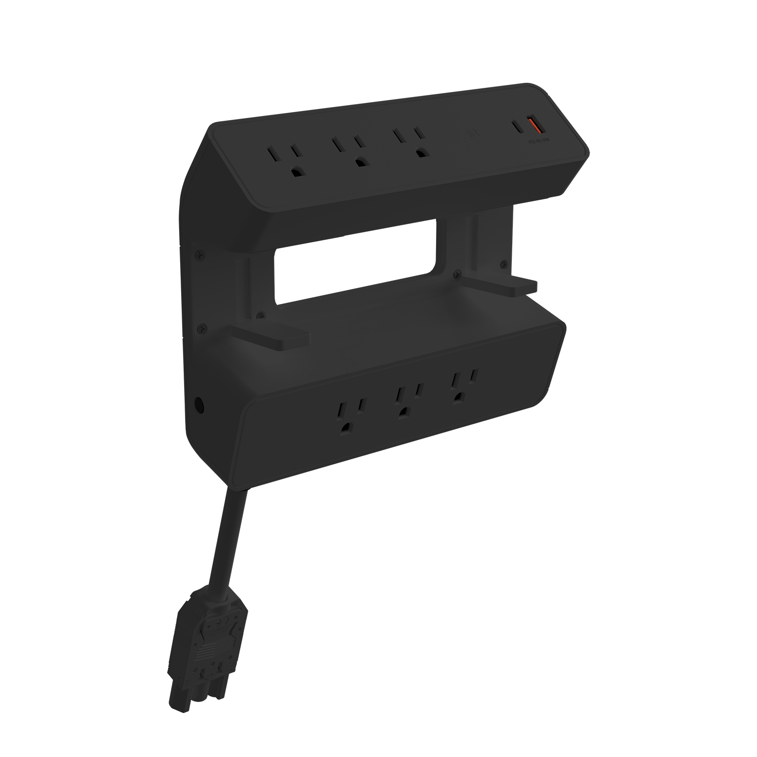 Dual Clamp on Power Module with 6 AC Outlets, 1 USB C Port, and 1 USB A Port. Includes PWR Link plug. UL Listed.