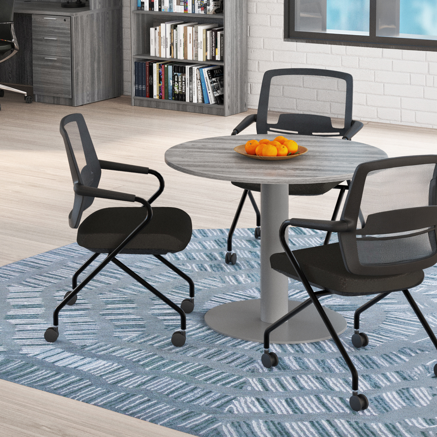 Fusion Standard Height Round Table features a powder-coated base in three color options. Available in 8 finish options. 36″ diameter top.