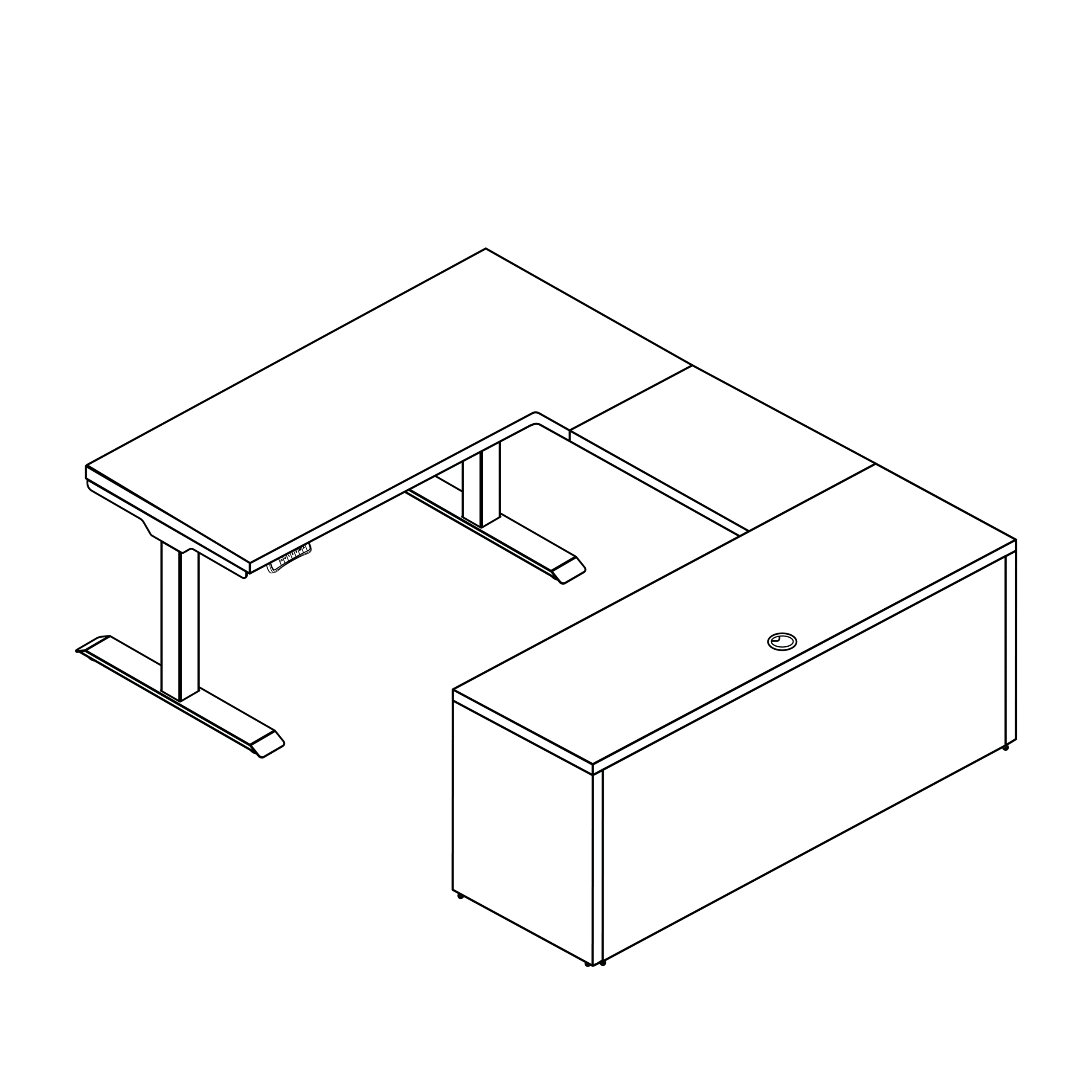 iRize Hybrid Standing U-Shaped Workstation with Non-Fluted Edge Top in three base colors and two laminate finishes. Changing posture throughout the day can improve energy levels and boost productivity. iRize meet BIFMA Ergonomic guidelines and provide you with ultra quiet, smooth and precise lift that accommodate people in any height range. Fully integrates with Rayne Line Laminate products.