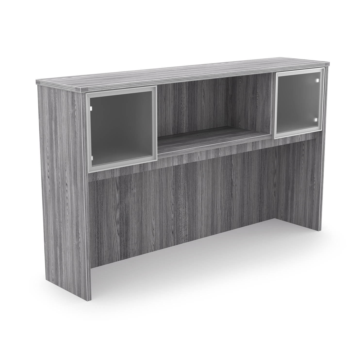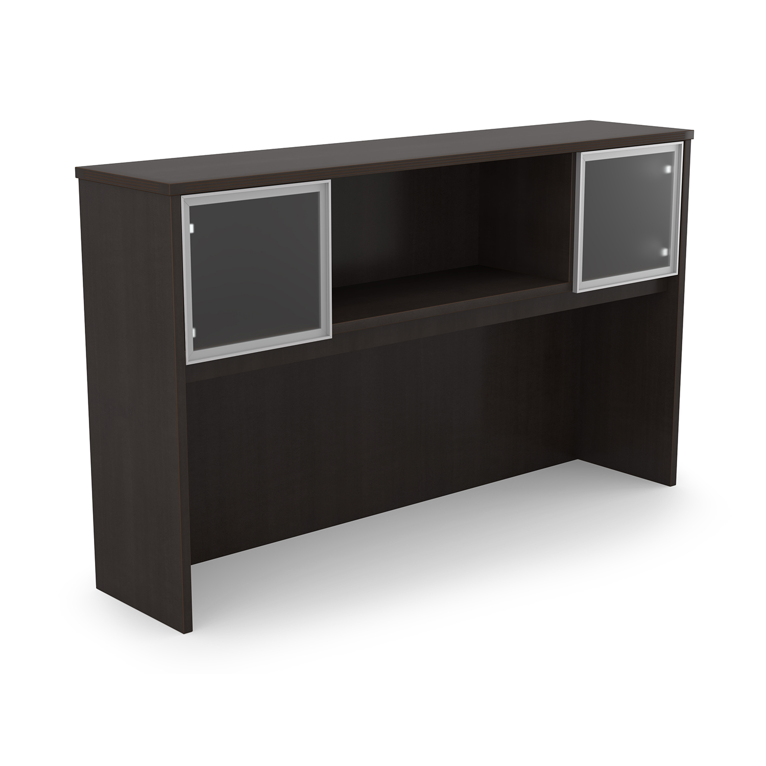 Kai Open Hutch with 2 Glass Doors is 66″ W compatible with 66″ W desks and credenzas. Available in five finishes.