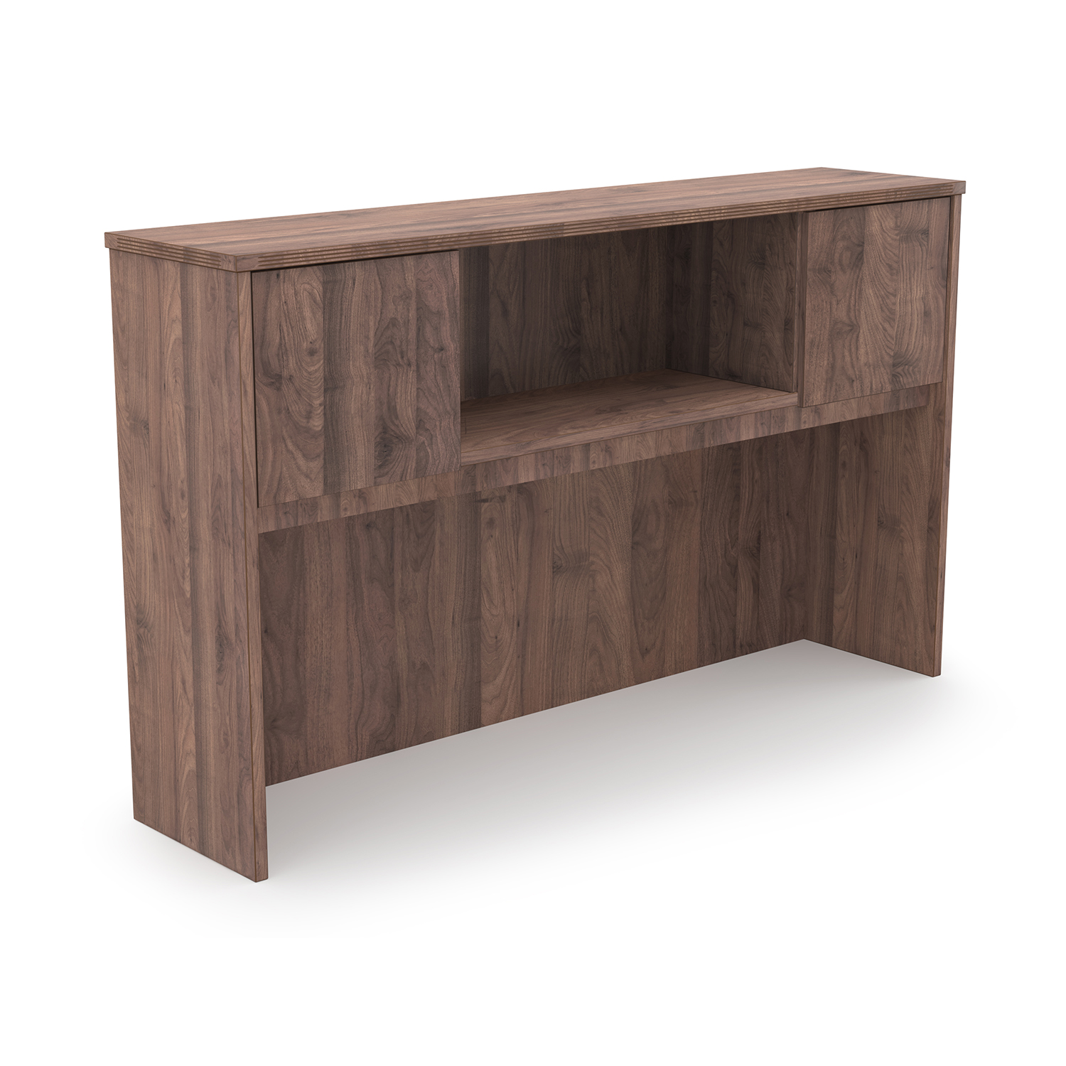 Kai Open Hutch with 2 Wood Doors is 71″ W compatible with 71″ W desks and credenzas. Available in five finishes.
