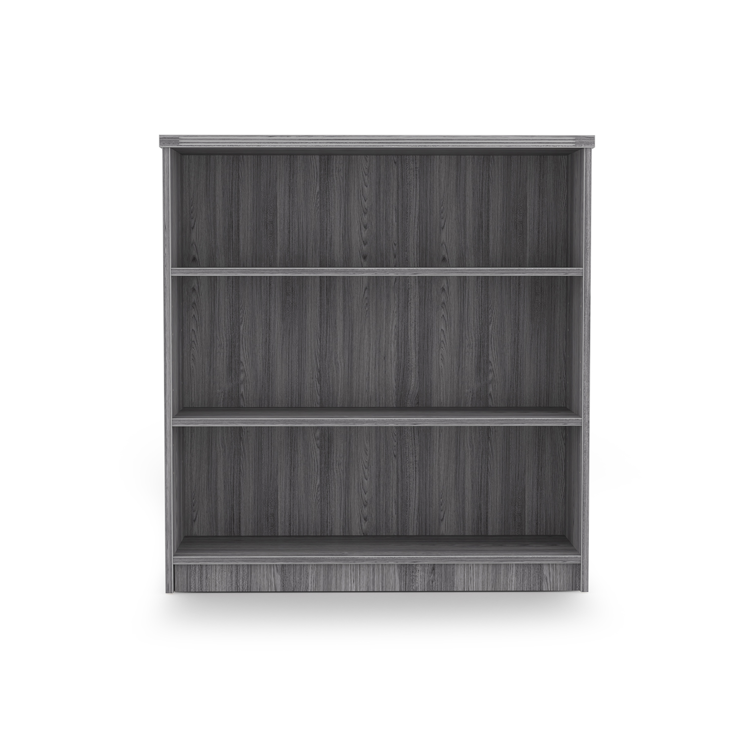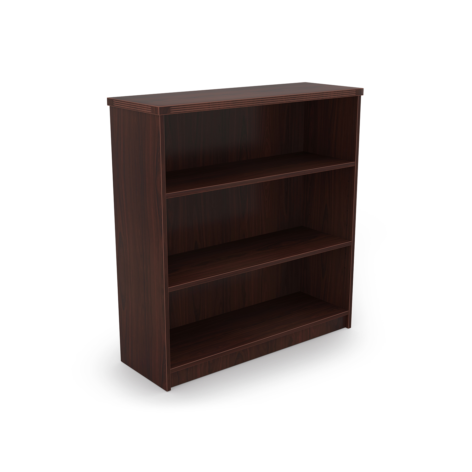 Kai Laminate Bookcase with 3 shelves with fluted top. Stands 3 feet tall. Contains 2 adjustable shelves. Available in 5 finish options.