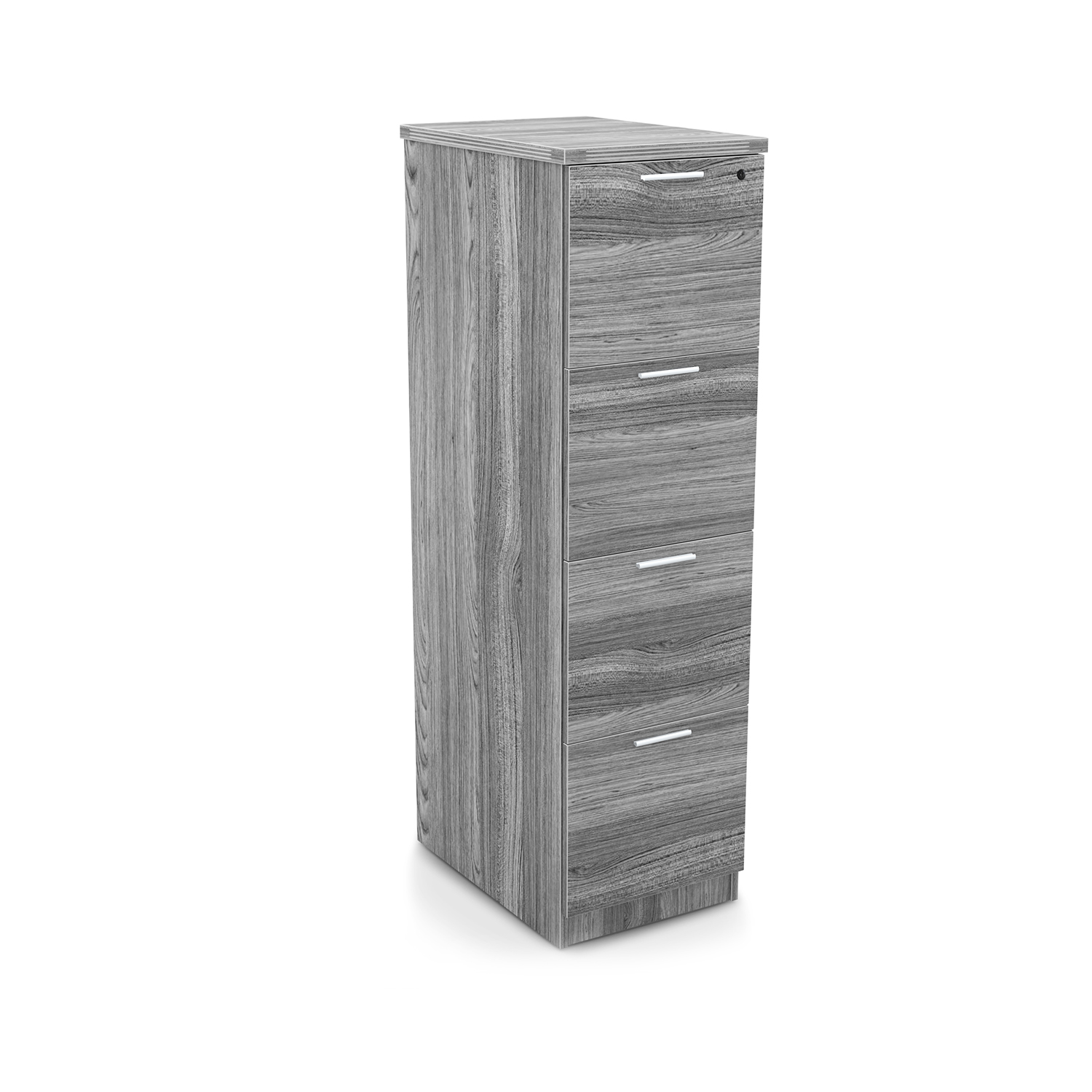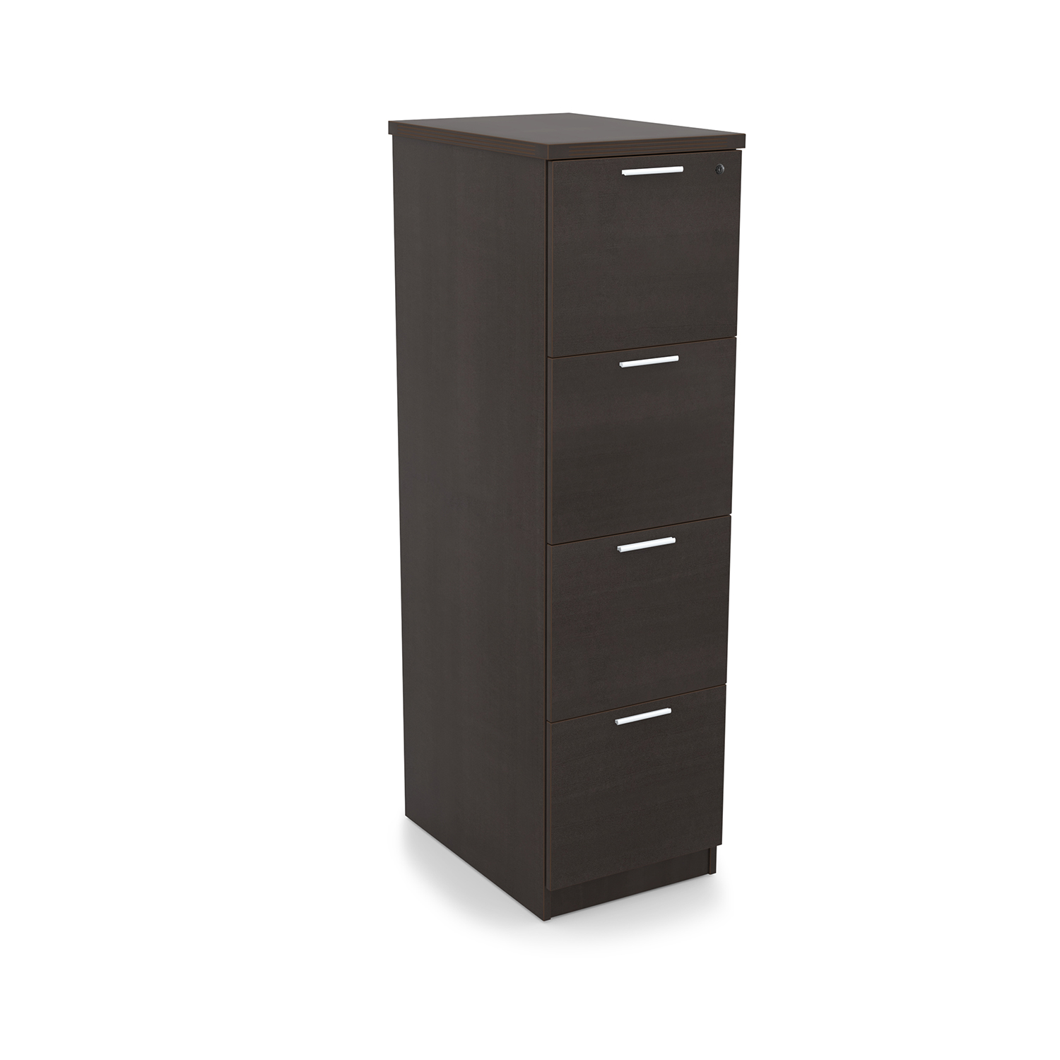 Kai Laminate Vertical File has 4 drawers and fluted edges. Stands 4.5 feet tall. with front-to-back filing. Available in five finish options.