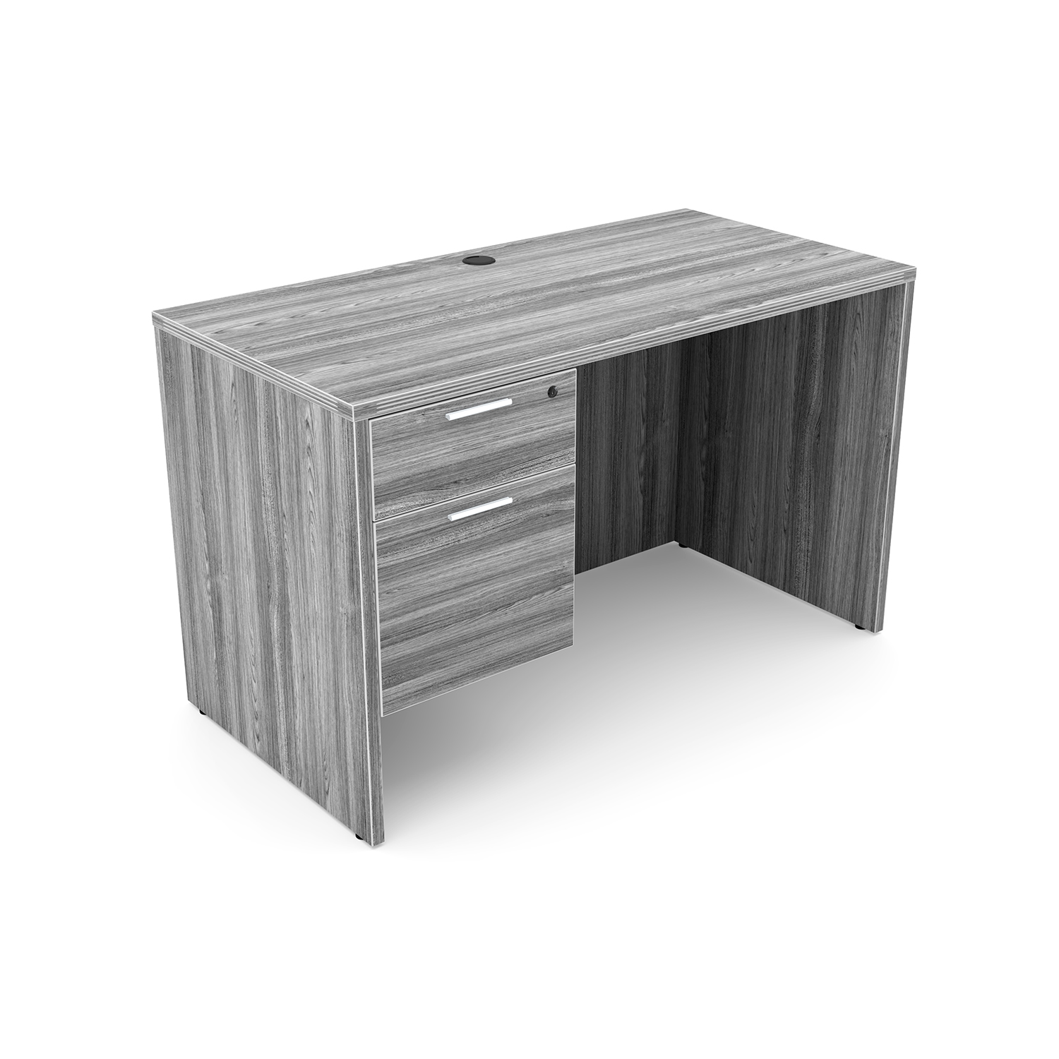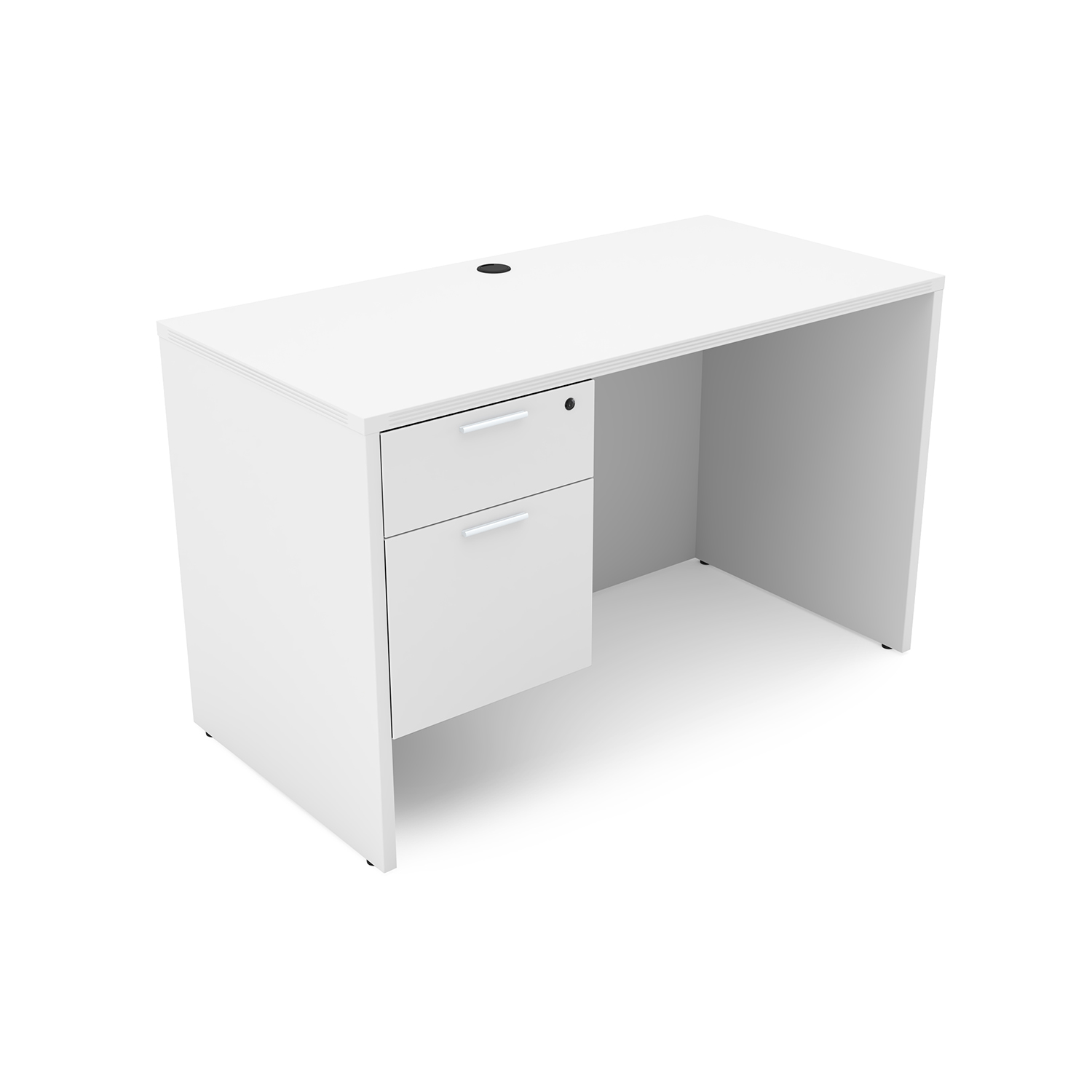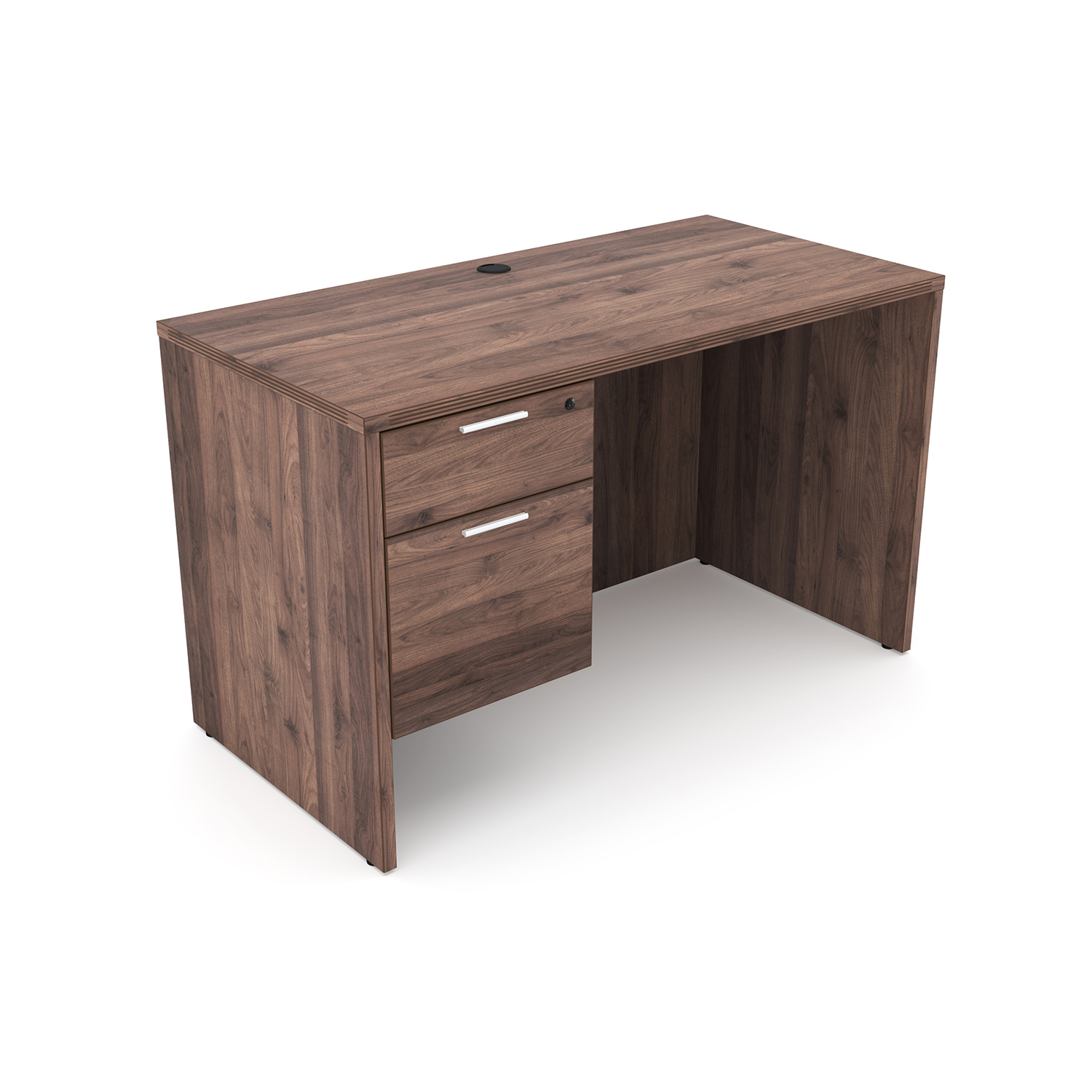 Kai Laminate Desk, 24″ x 48″ has two hanging drawers and fluted edges. This is a compact desk for small spaces.