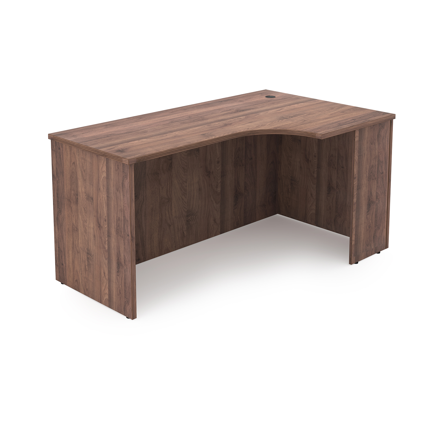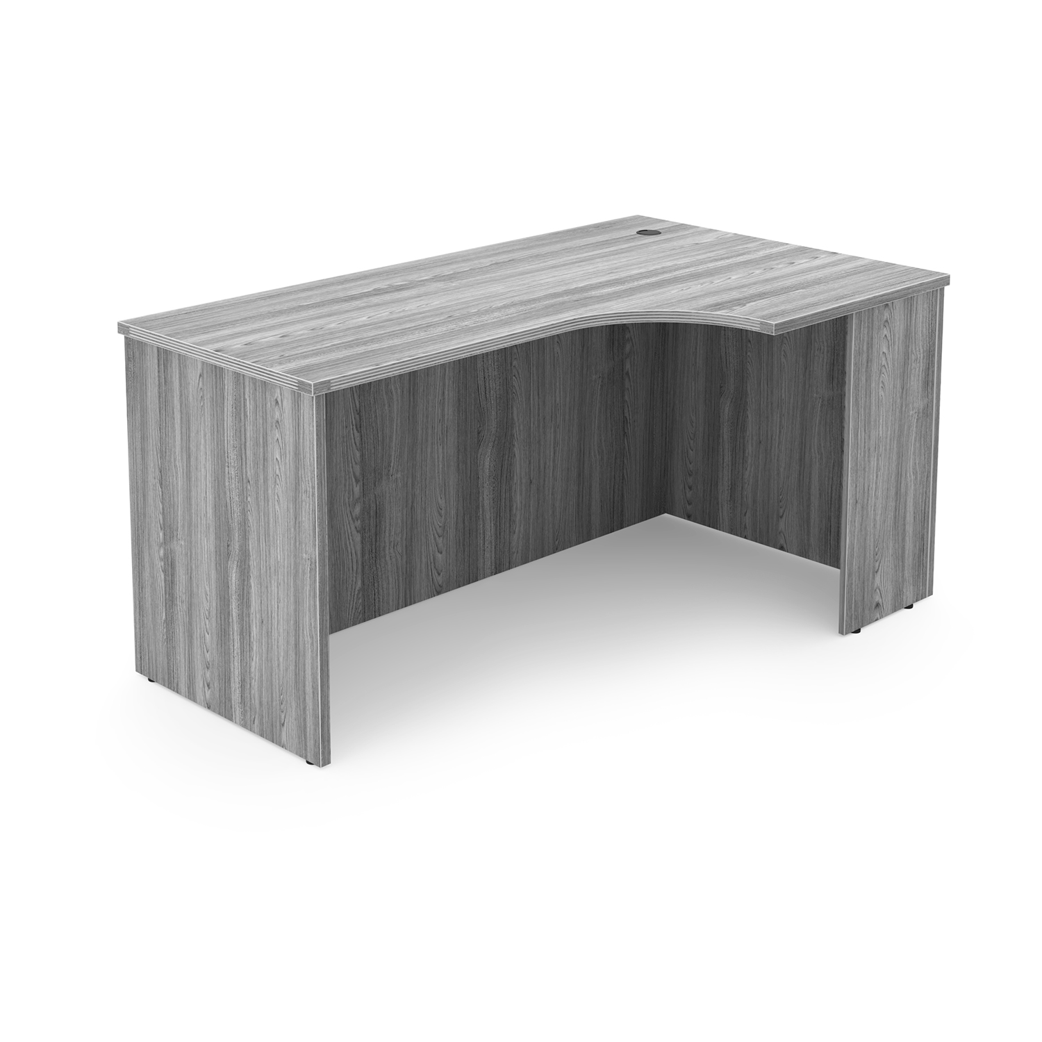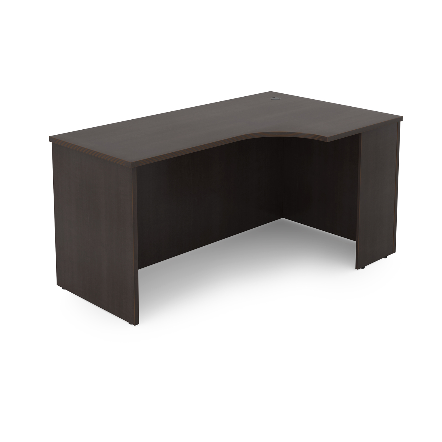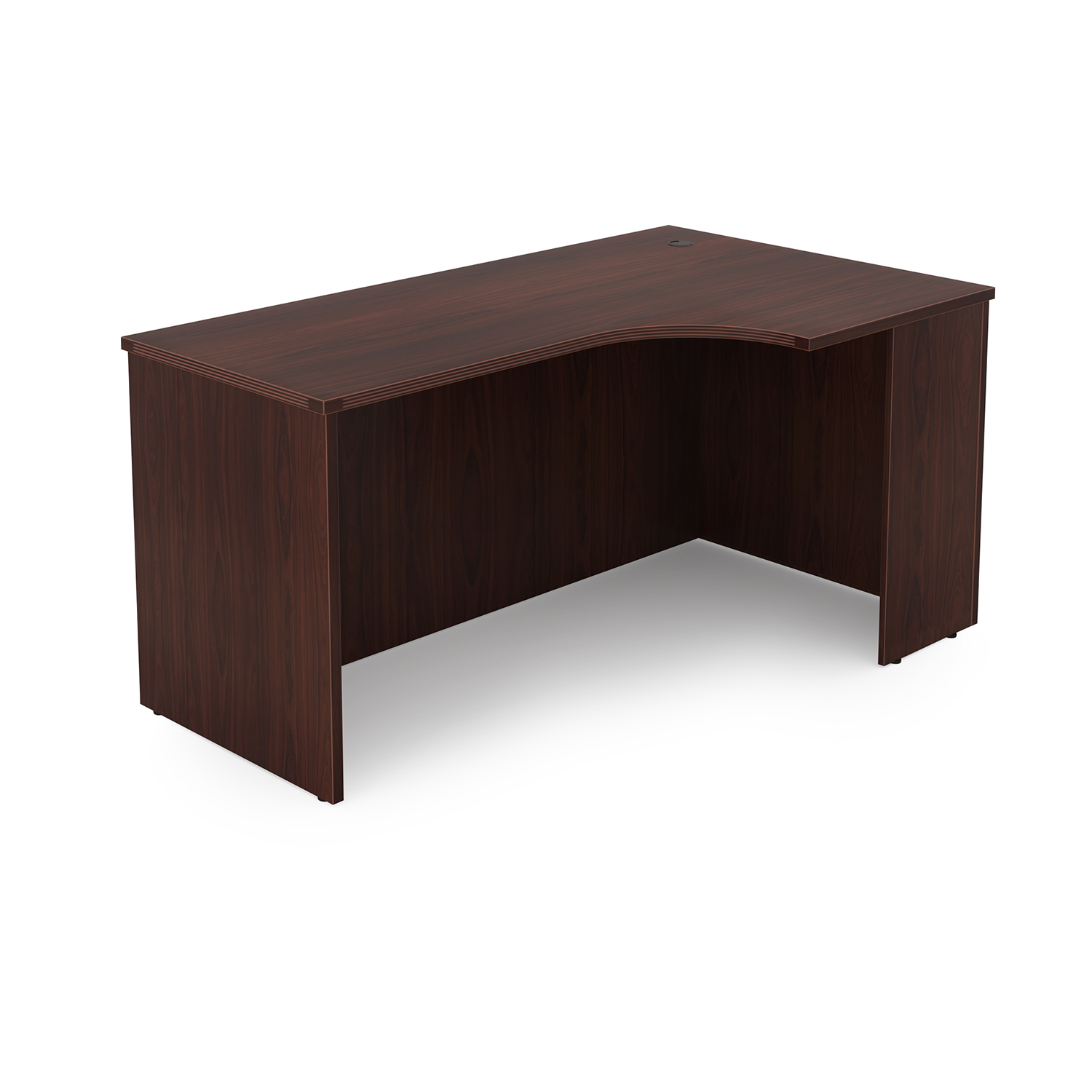 Laminate extended corner credenza shell to be used standalone, with under desk storage, or with hutch storage. Measures 36″ at its deepest point and 71″ long with a full height modesty. Left-handed version.
