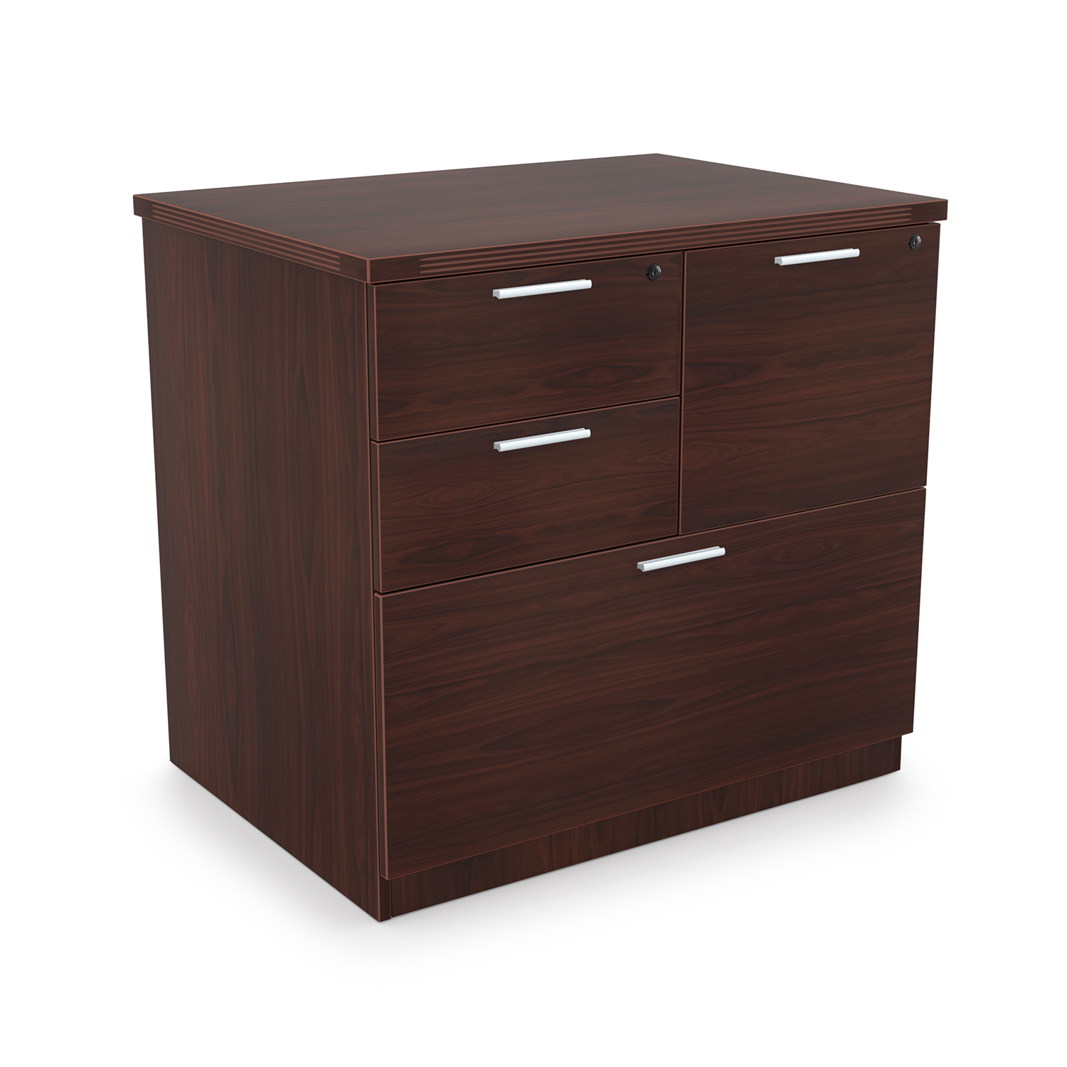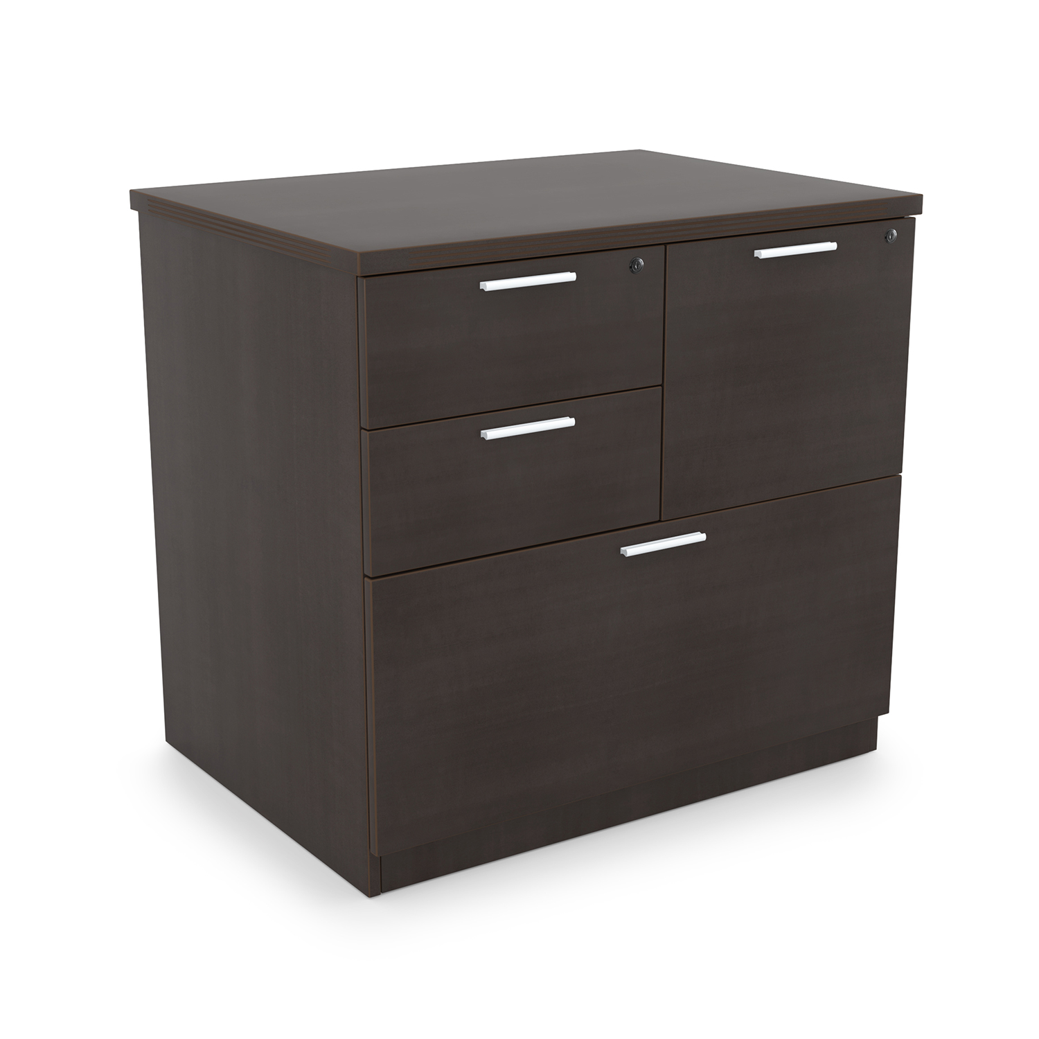 Kai Laminate Multi-File Lateral File, 30″ W has 4 drawers and fluted edges. Includes a dual locking system. Available in 2 finish options.