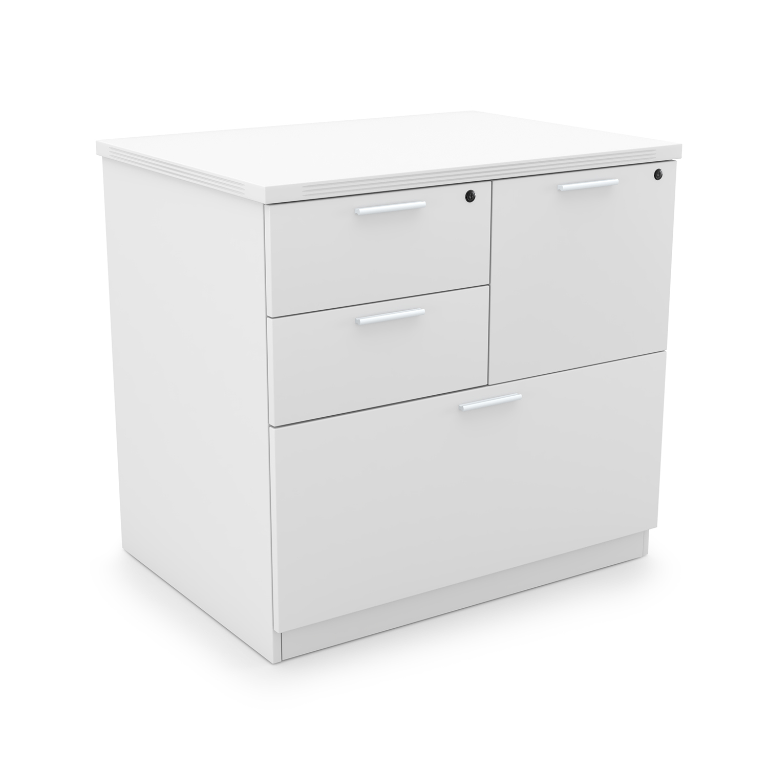 • Dual locking system – right lock secures the file drawer and lateral file drawer, left lock secures the box drawers.