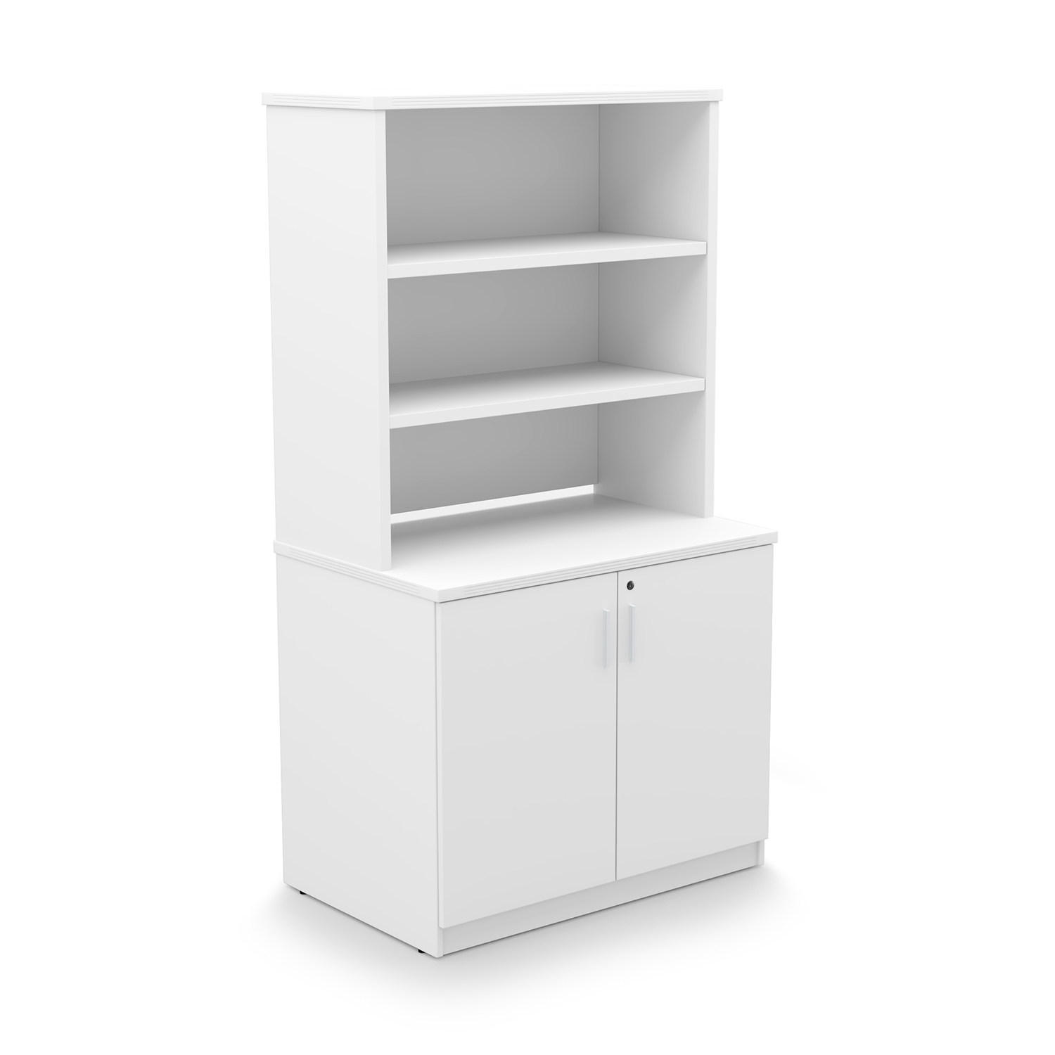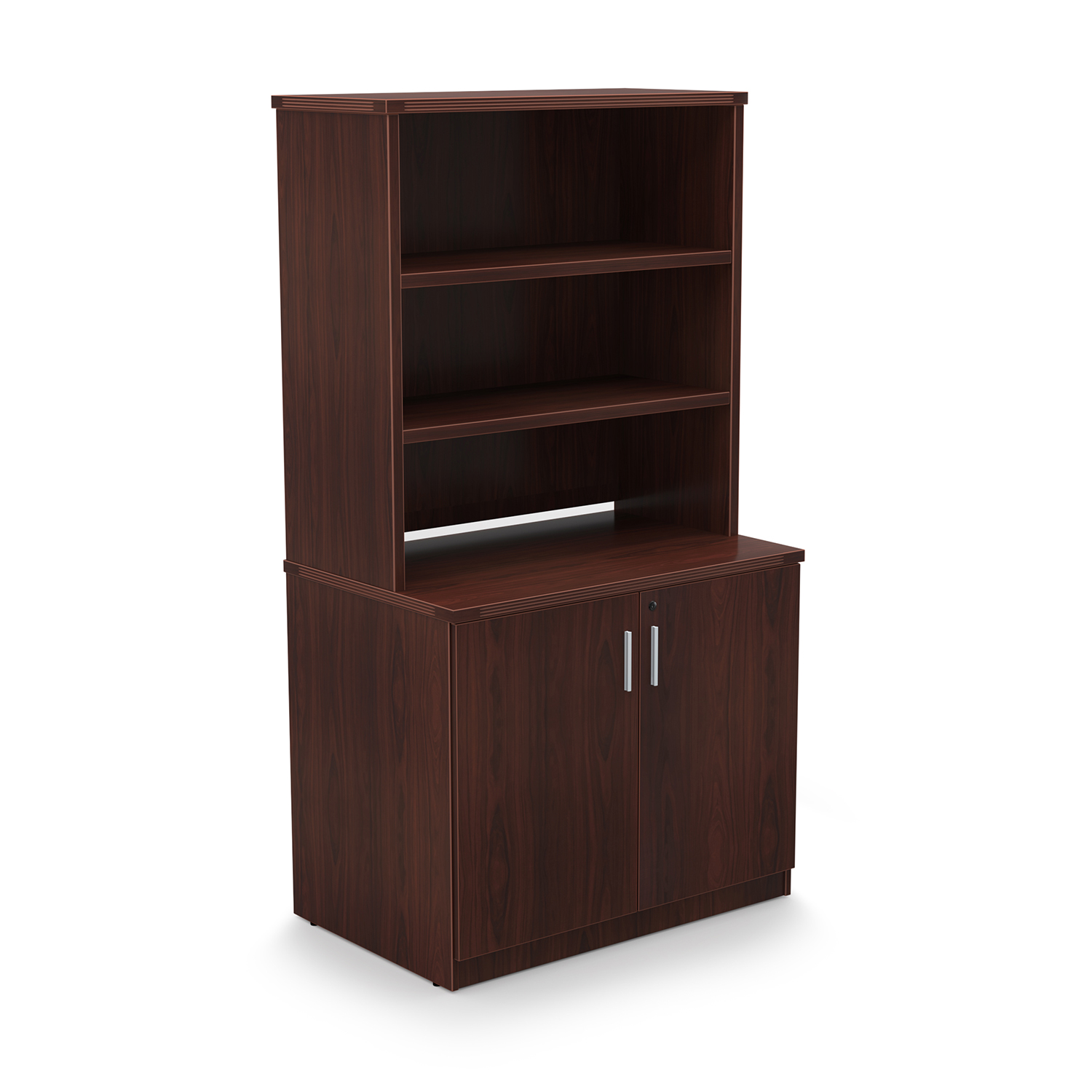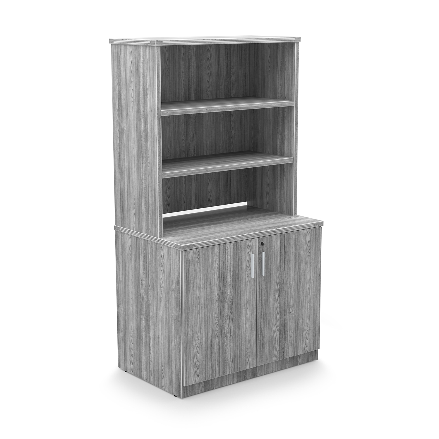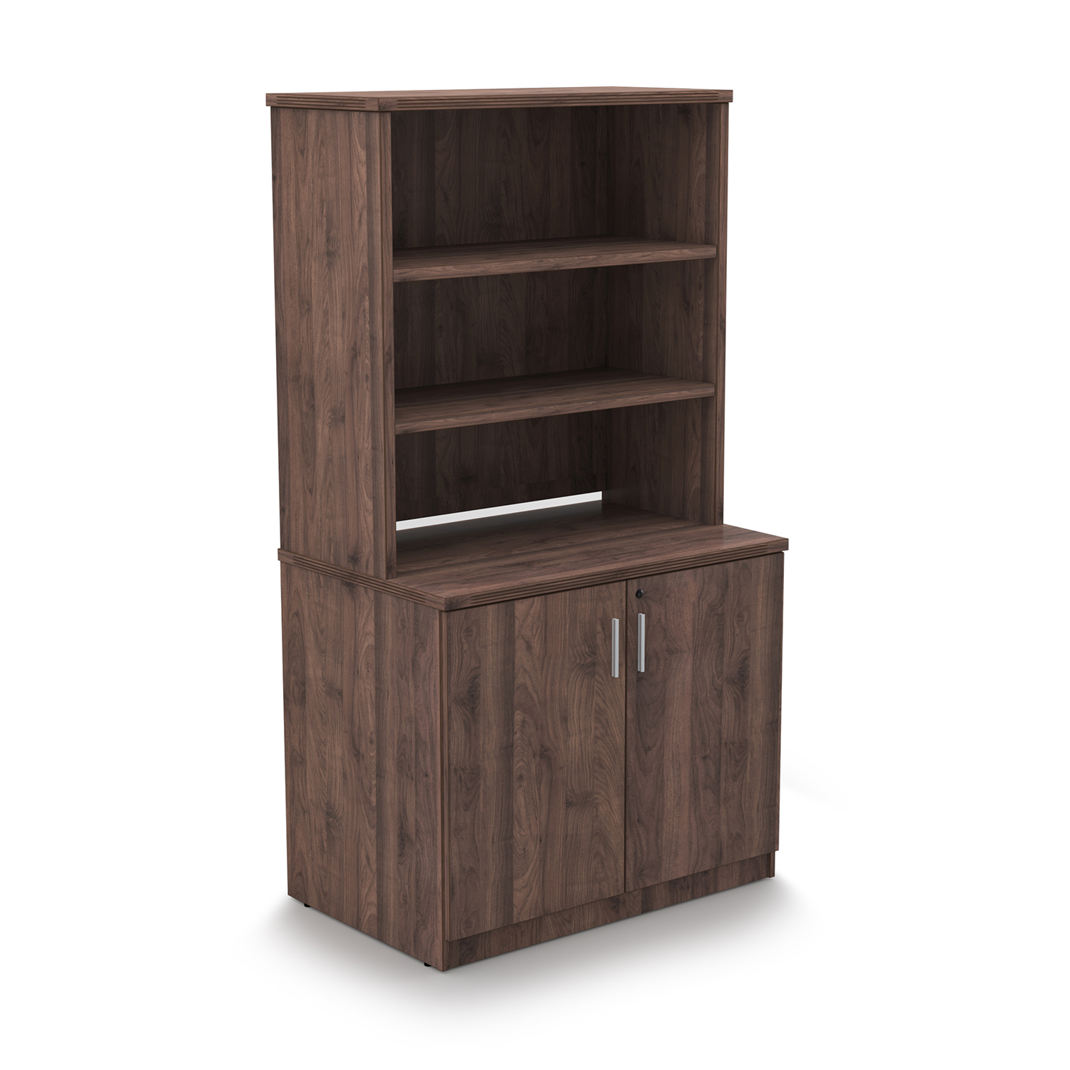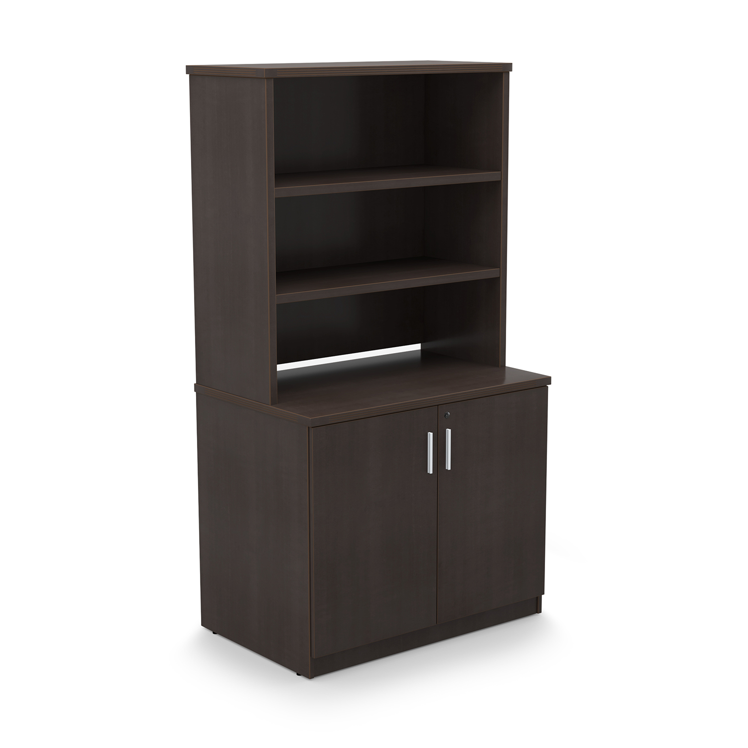 Kai Storage Cabinet with Hutch stands 5.75 feet tall. Includes adjustable inner shelf inside the storage cabinet. Available in five finishes.