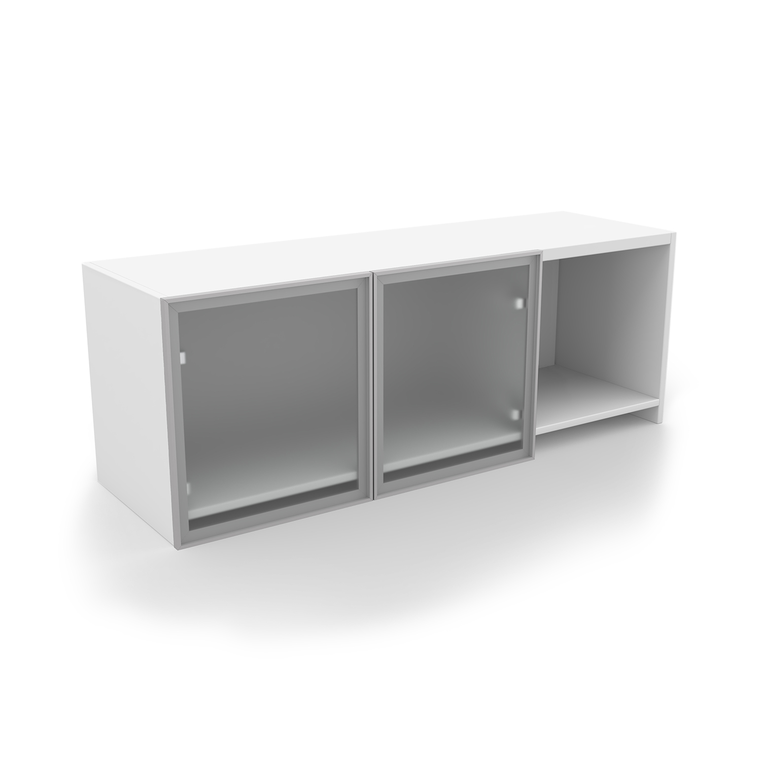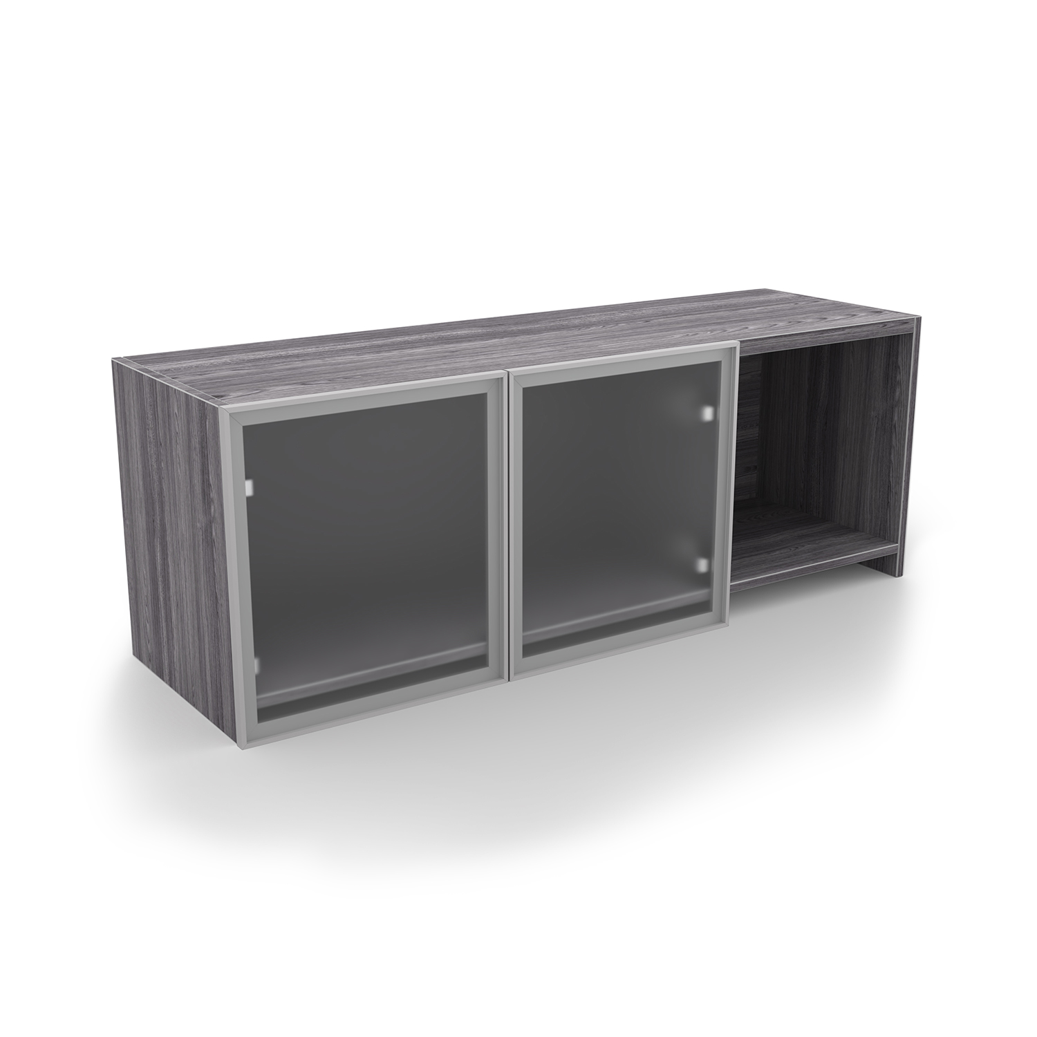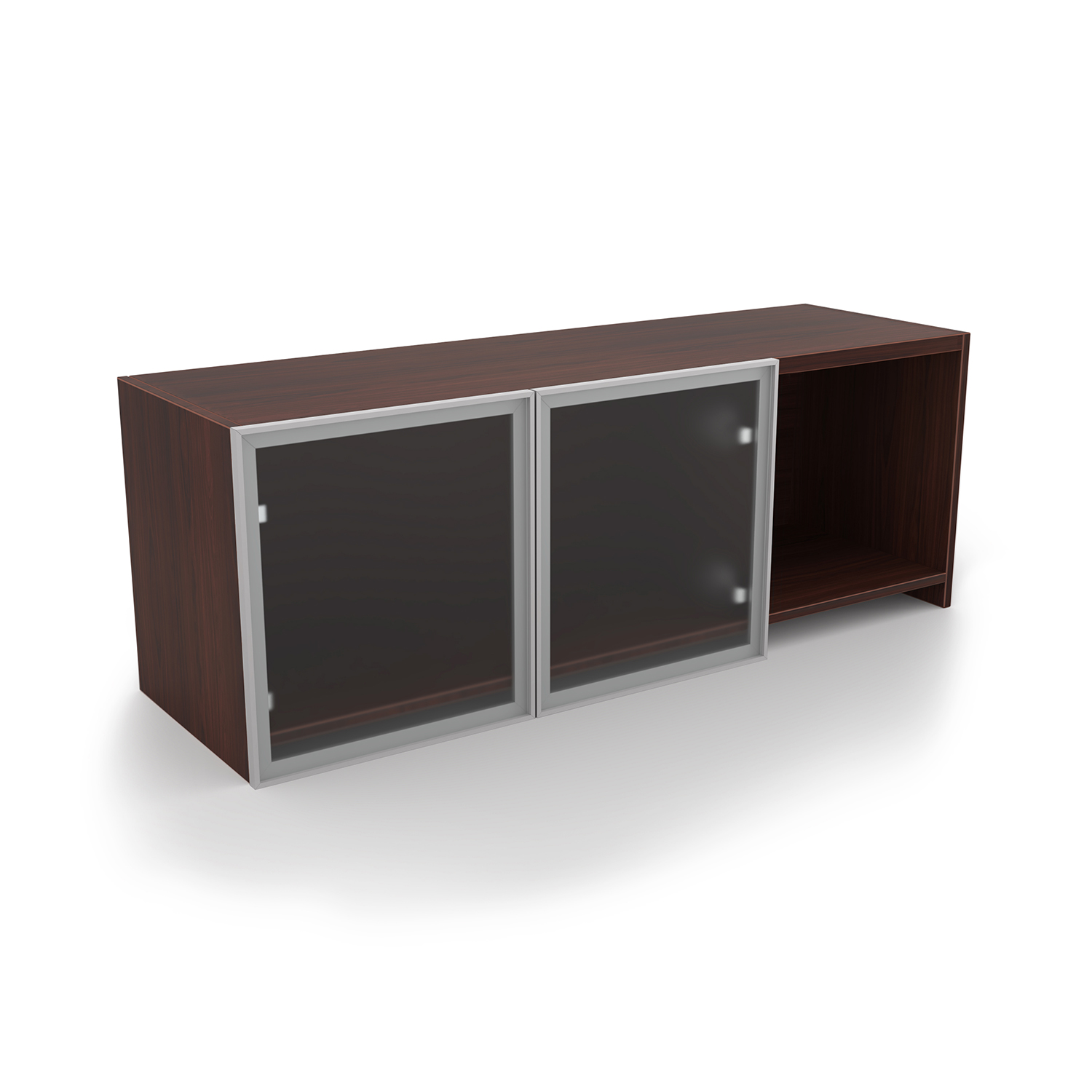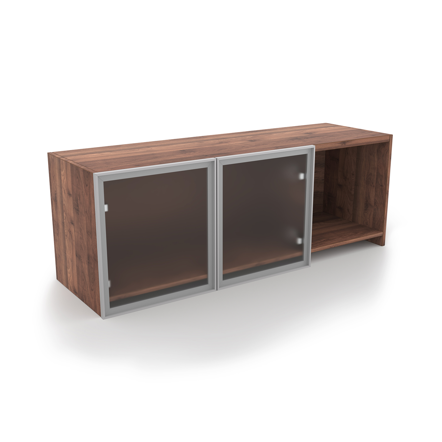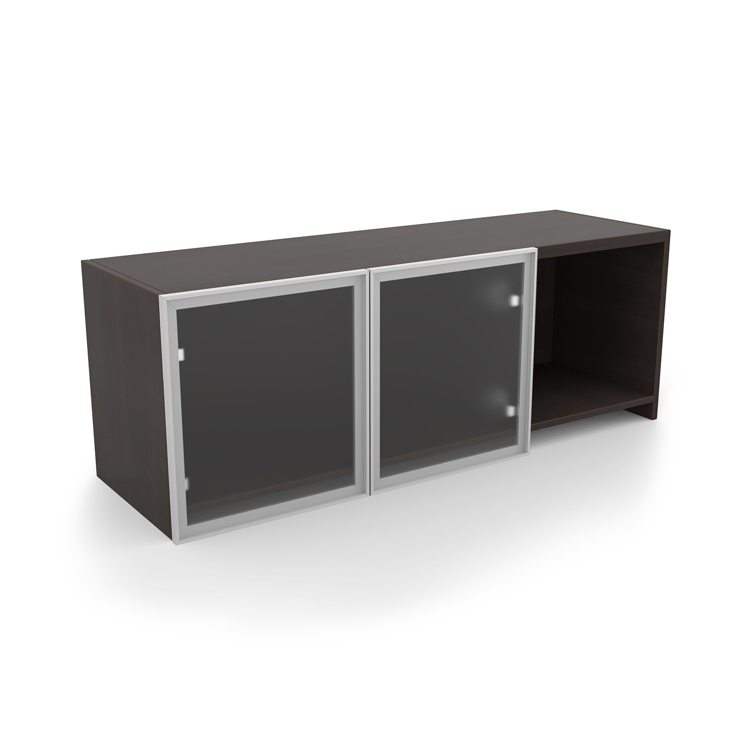 Kai Wall Mounted Hutch with 2 glass doors, 48″ fixes to the wall with included mounting system. Available in 5 finishes.