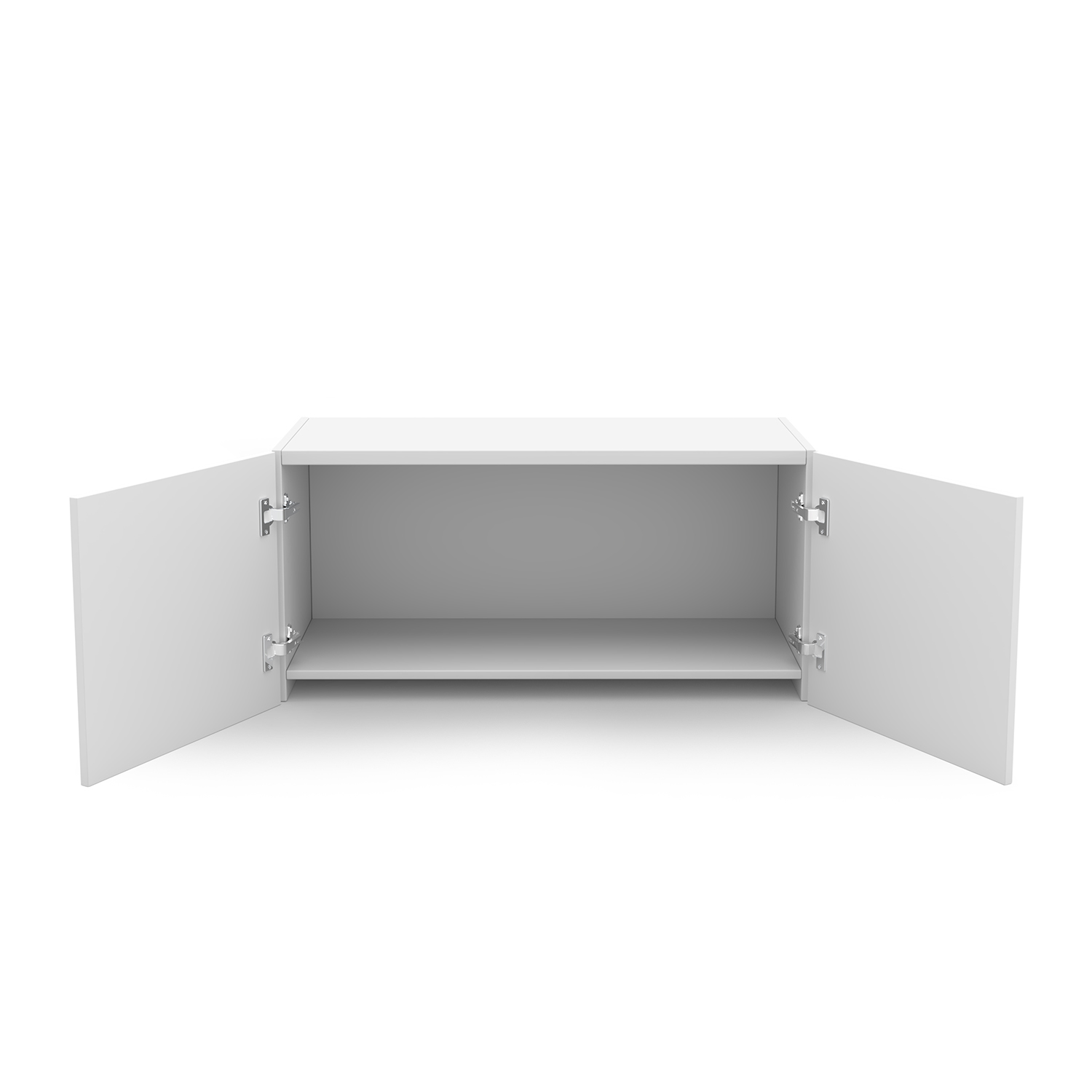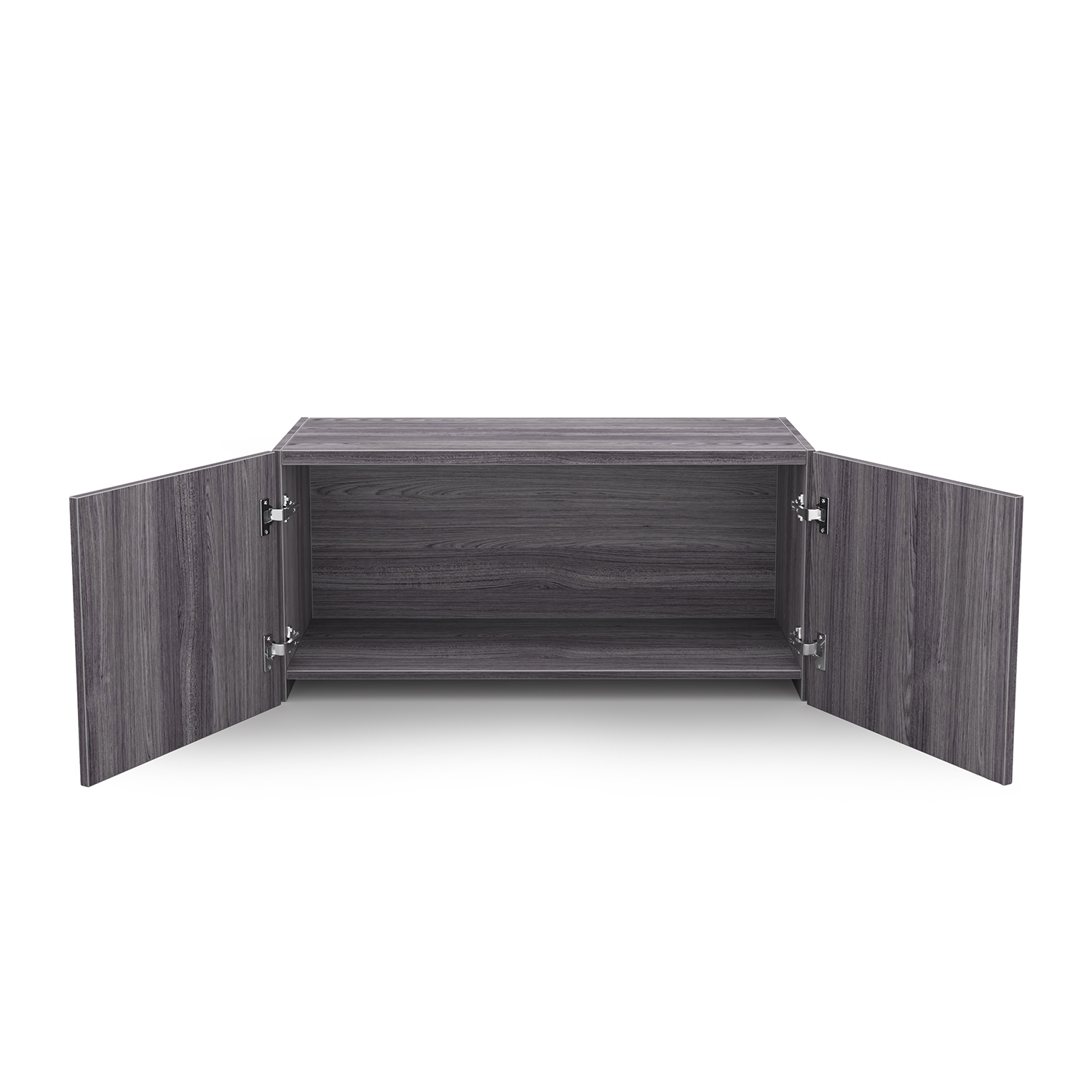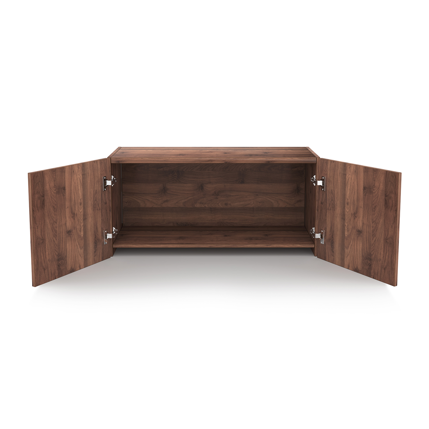 Kai Wall Mounted Hutch with 2 wood doors, 36″ fixes to the wall with included mounting system. Available in 5 finishes.