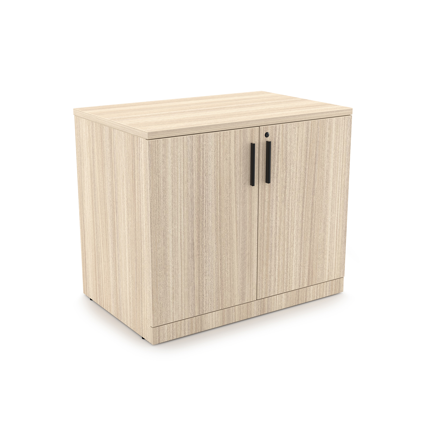 Rayne Storage Cabinet with 2 doors, 36″ width with one adjustable inner shelf and flat edges. Available in two finish options.