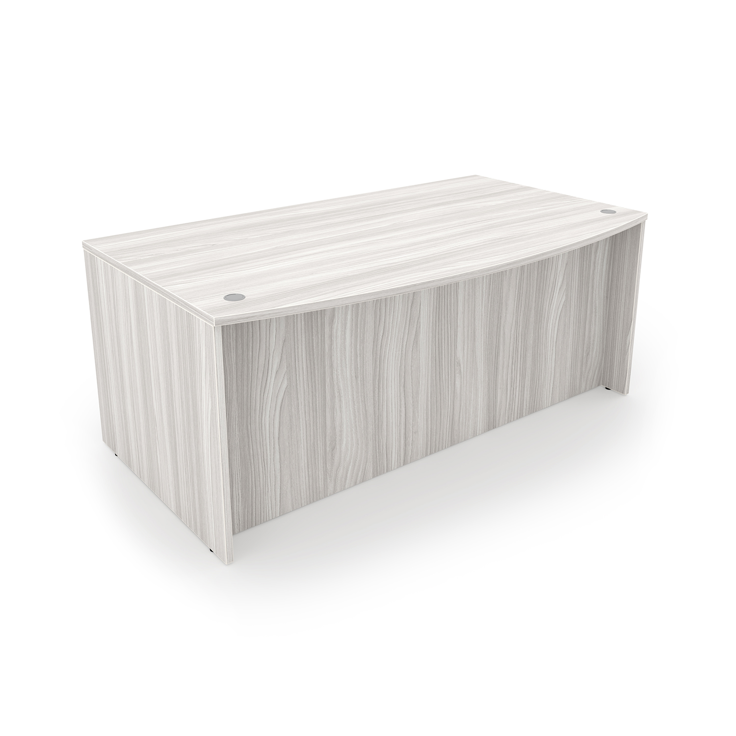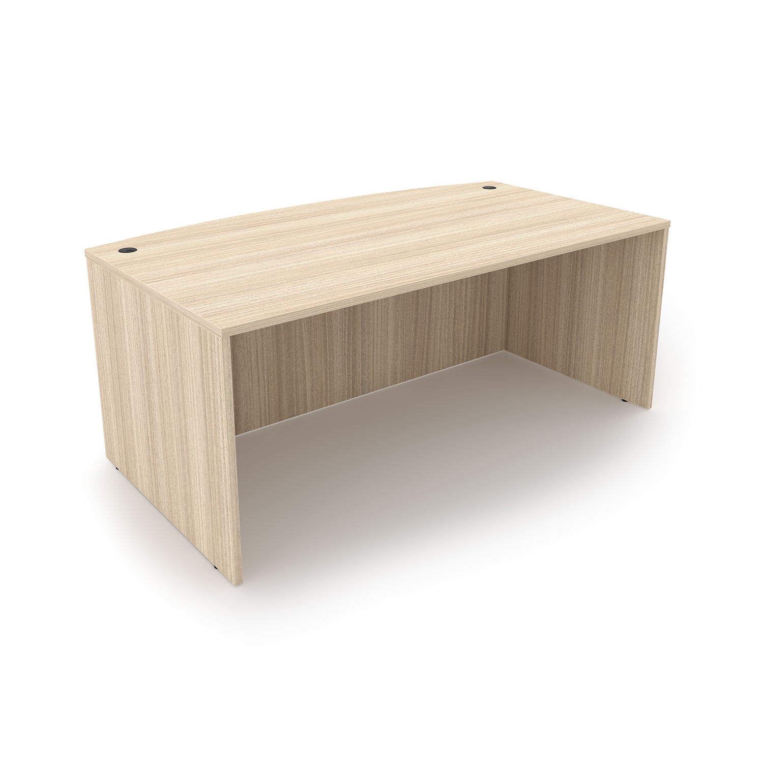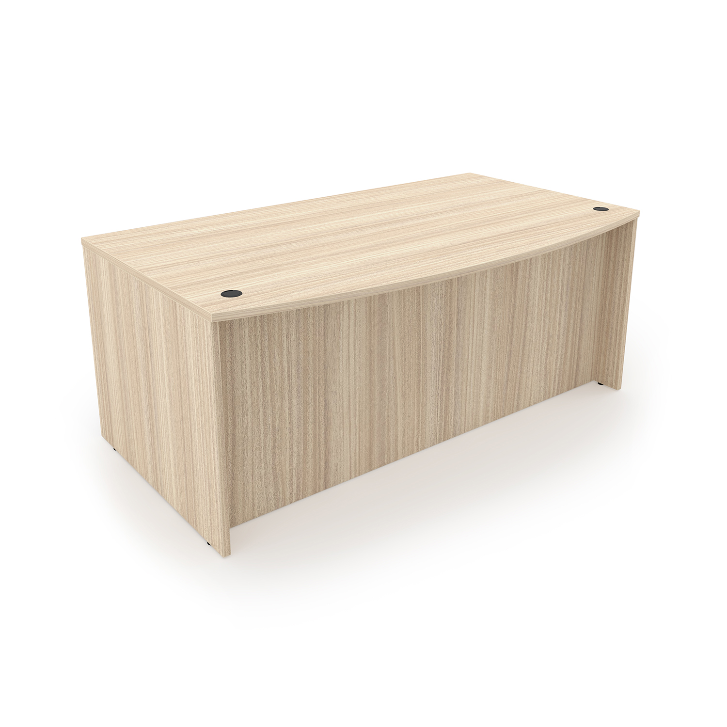 Rayne Laminate Bow Front Desk Shell, 36″ x 71″ with two grommets and flat edges. Perfect to use as an executive desk in private office spaces.
