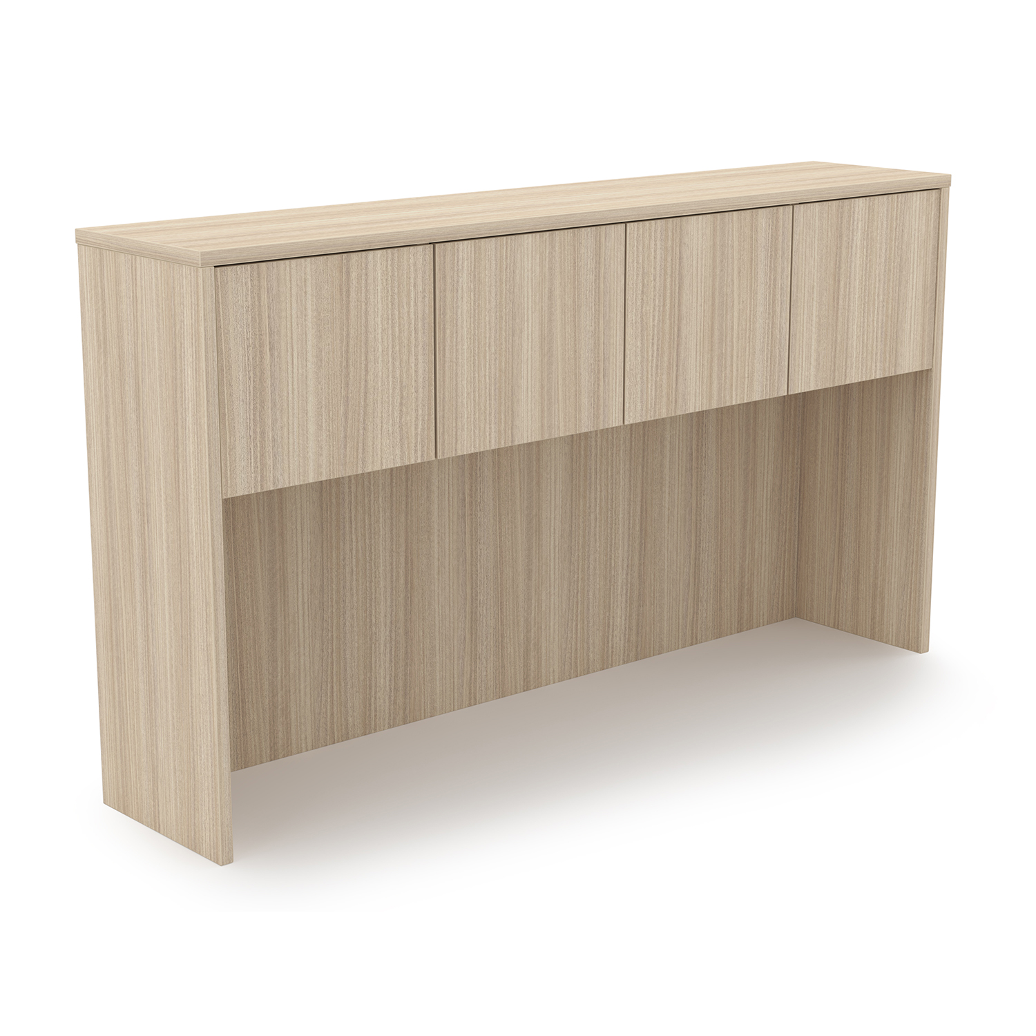 Rayne open hutch compatible with 66″ W credenzas and desks. Includes 2 wood door kit with 4 glass doors rimmed with aluminum.