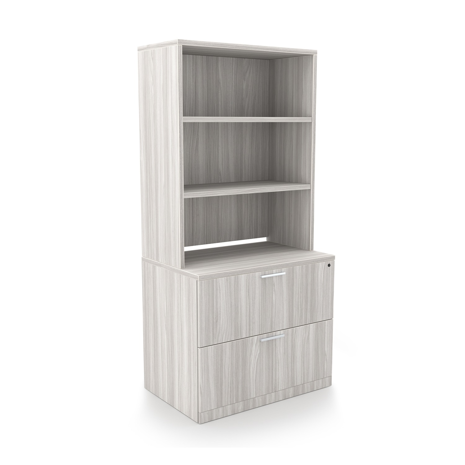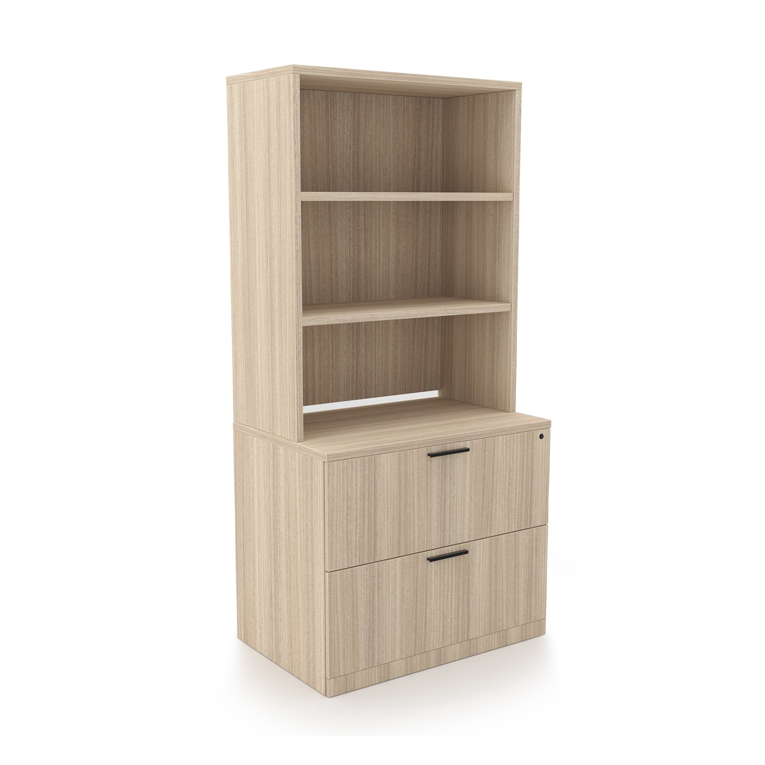 Rayne 2 drawer lateral file that locks with 2 shelf open hutch. Stands 6 feet tall.
