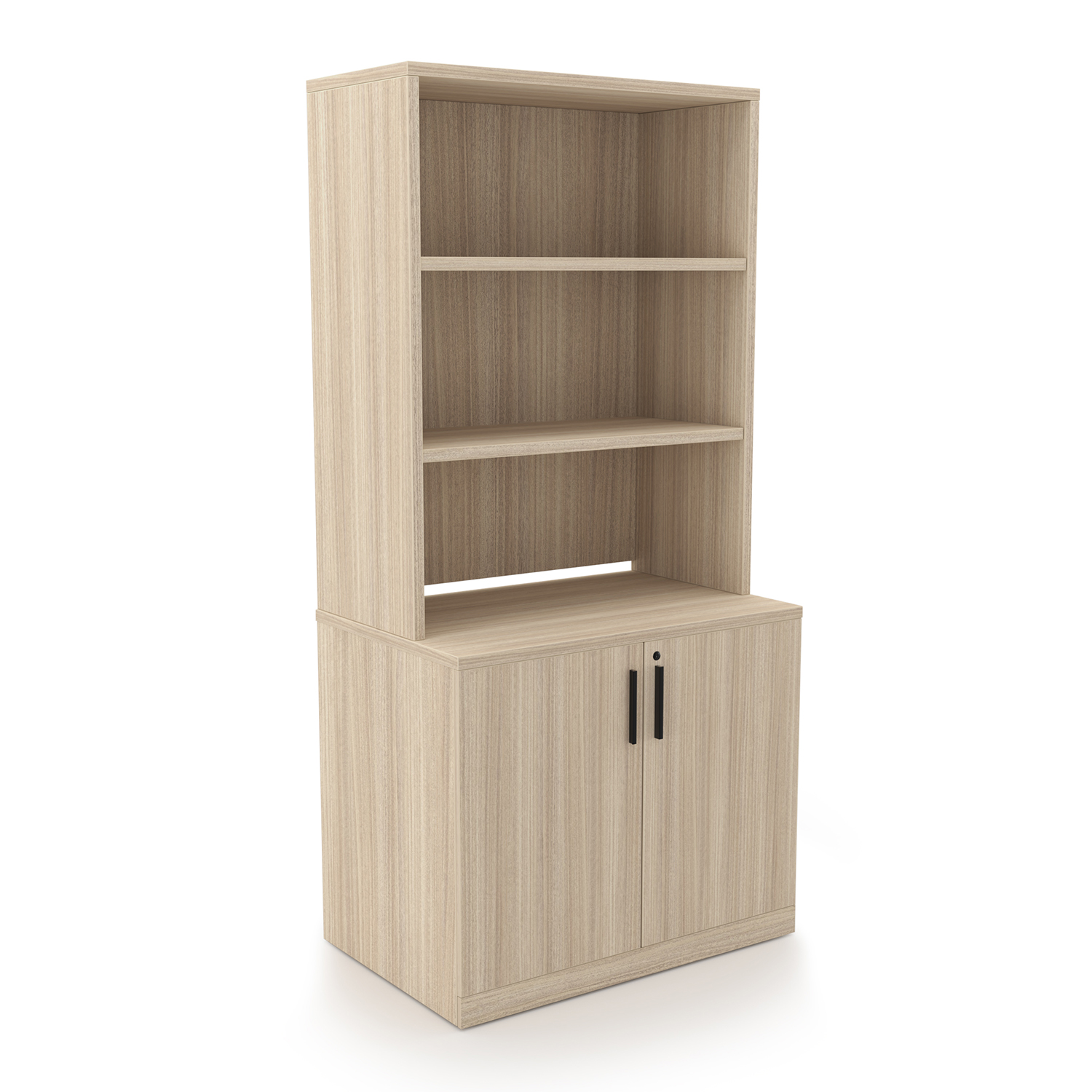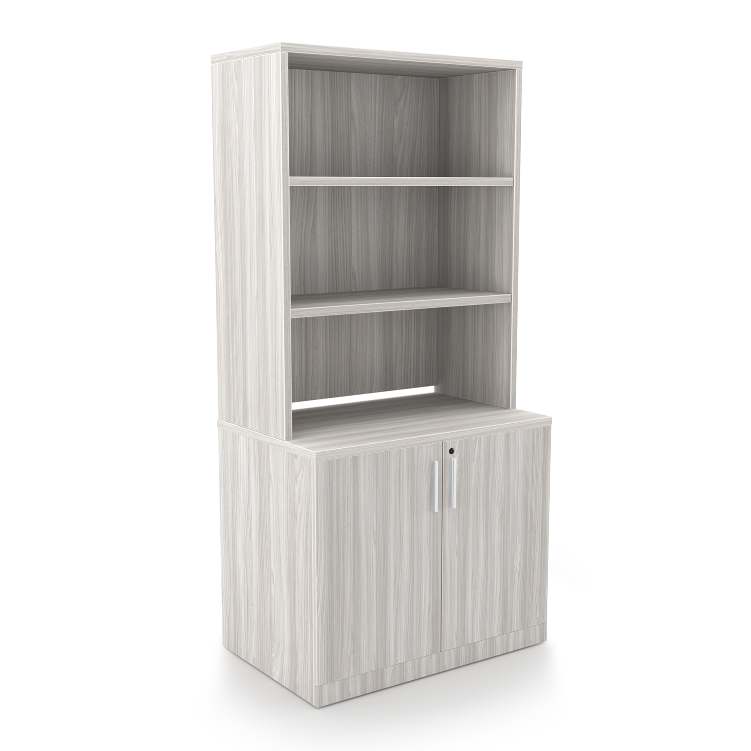 Rayne Storage Cabinet with Hutch stands 6 feet tall. Includes adjustable inner shelf inside the storage cabinet. Available in two finishes.