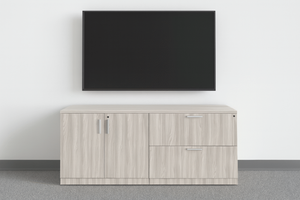 Products Shown: Rayne Credenza with Storage Cabinet and Lateral File